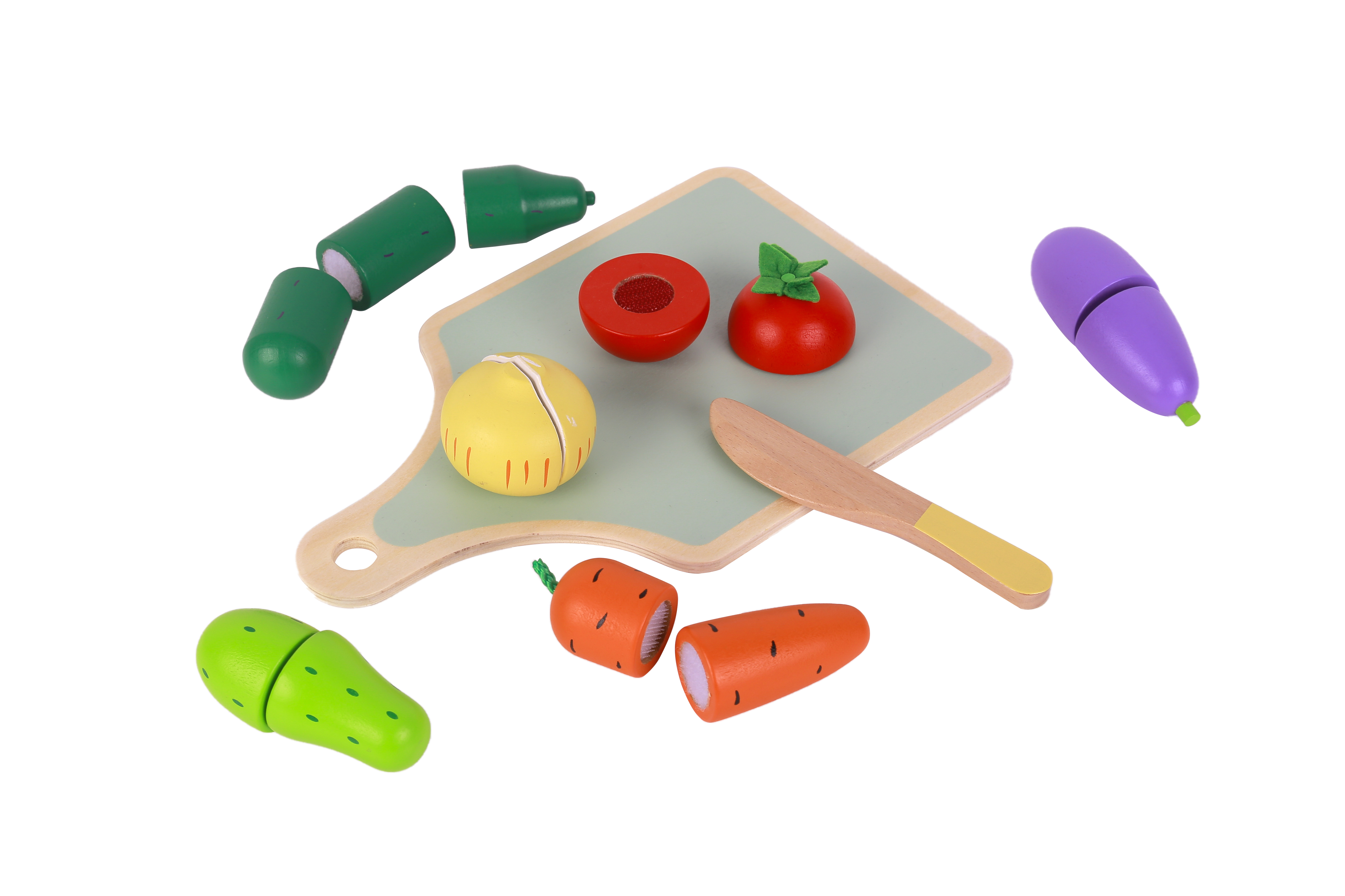 Large vegetables pieces, realistic experience, a variety of vegetables, better grip, let the baby experience the fun of cutting things. Puzzle play, hand-brain coordination: a variety of fun play, exercise baby hand-brain coordination ability, comprehensive intelligence and happy growth. Observation and learning, cognitive training: realistic color, visual and auditory training, guide the baby recognize vegetables.