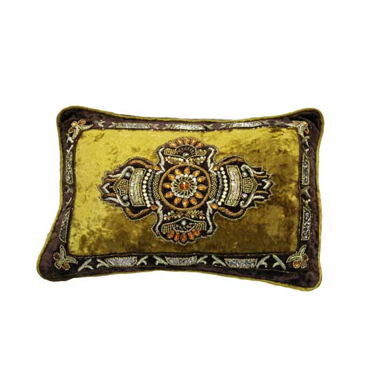 This rectangular-shaped cushion is hand-embroidered with intricate motifs with fine details. The velvet cushion covers feels ultra soft and comfortable. The exquisite cushion will add a luxurious and exotic touch to your home decor.