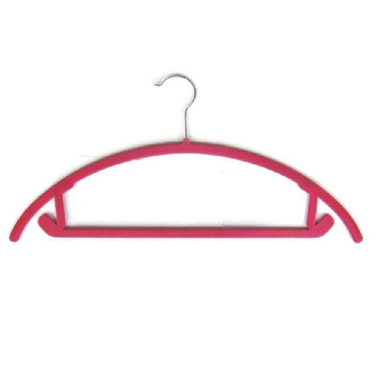 This new style velvet hanger comes with smooth curved shape for the shoulders. It effectively prevents deformation of garments. The velvet finish serves to prevent slipping.