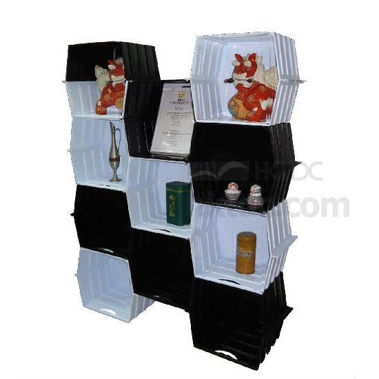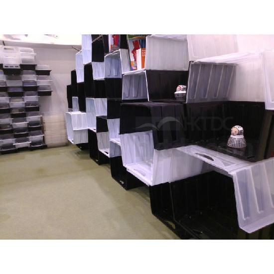 The containers can be arranged in a row or stacked in a pile within a given space,