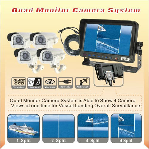 - 7" digital screen TFT LCD Color quad monitor with removable sun visor.