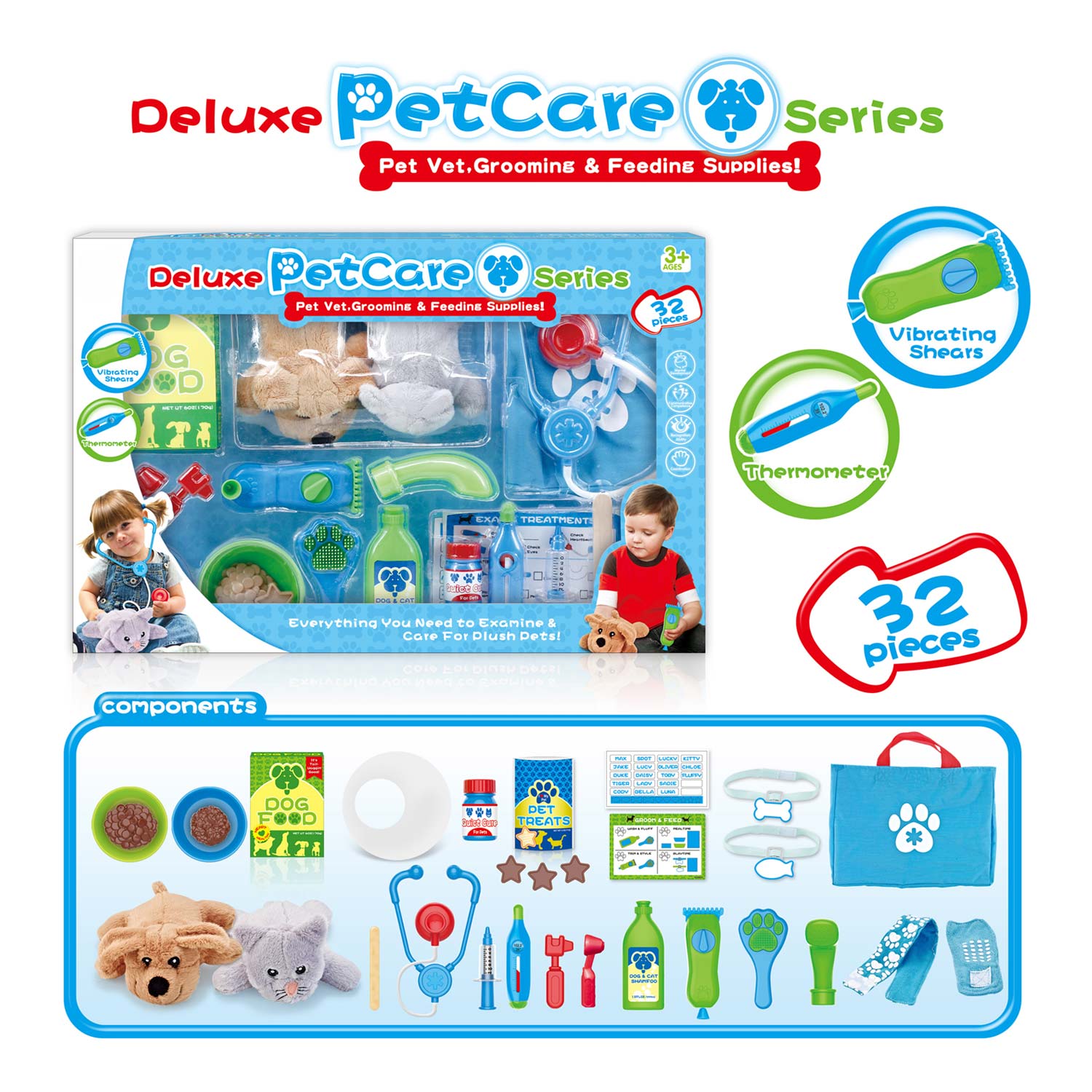 Product includes stuffed dog/cat and a transport carrier.Medical care set,washing care set and a handbag etc.