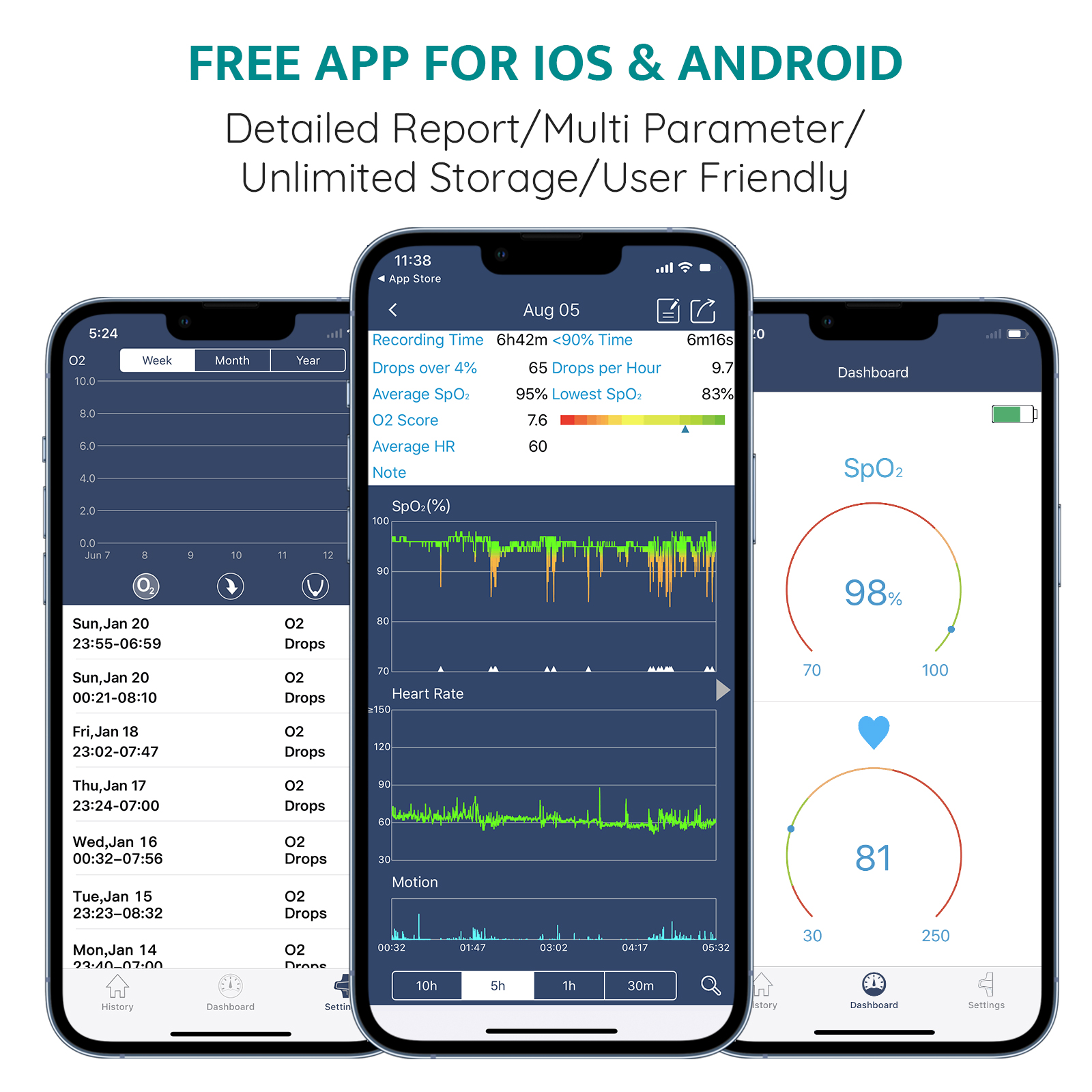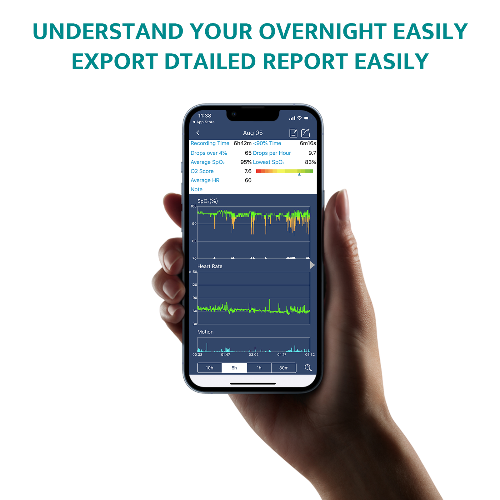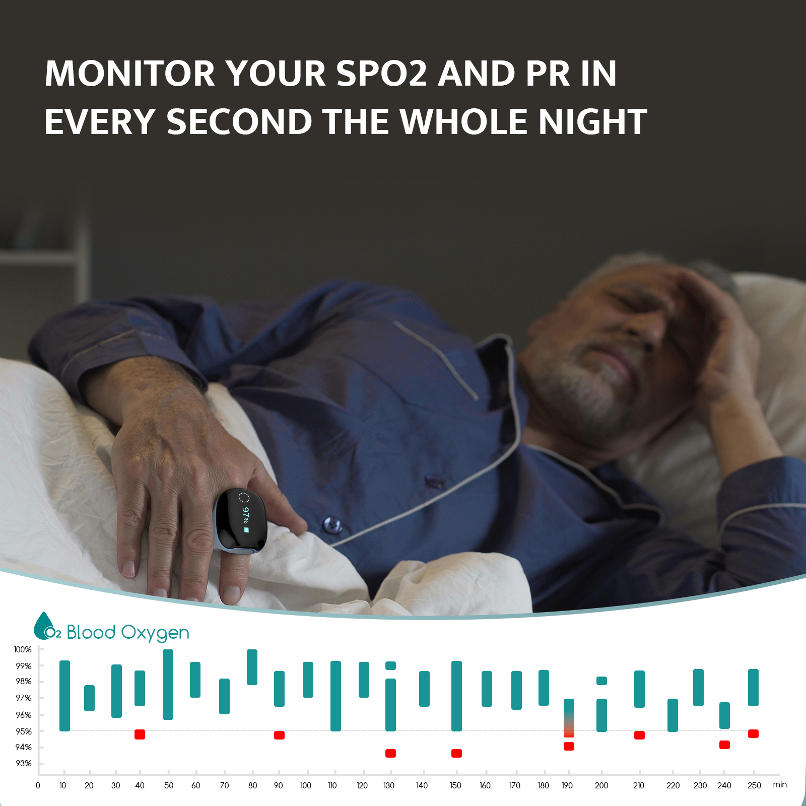 Featuring Medical-Grade Oximetry, the Sleep Oxygen Monitor comes with a Finger Vibration Alarm when Low Oxygen Levels or Abnormal Heart Rates are detected.
