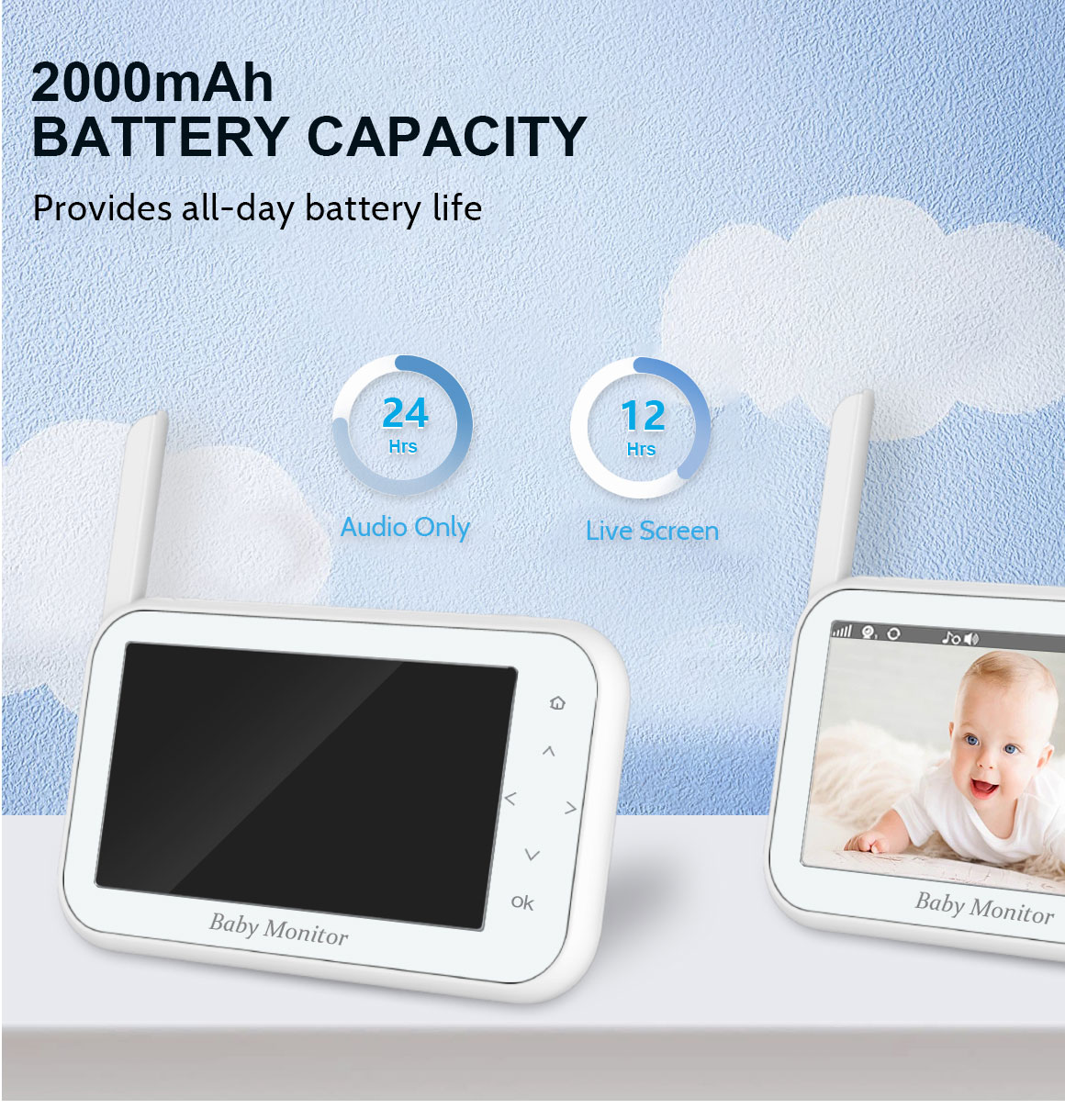 The 2.4GHz baby monitor covers a wide range of transmission (300meters) that allows you to keep an eye on your baby.