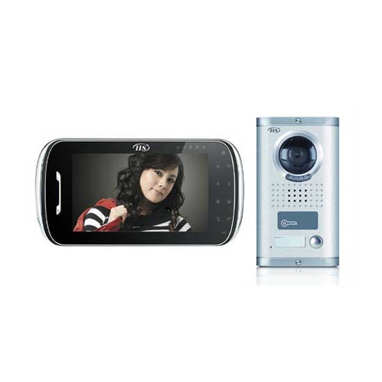 Displayed is a video door phone that comes with a colored monitor and camera. Designed with a modern touch, this video door phone is easy to install and use. Made of high quality materials, this video door phone has a long service life.