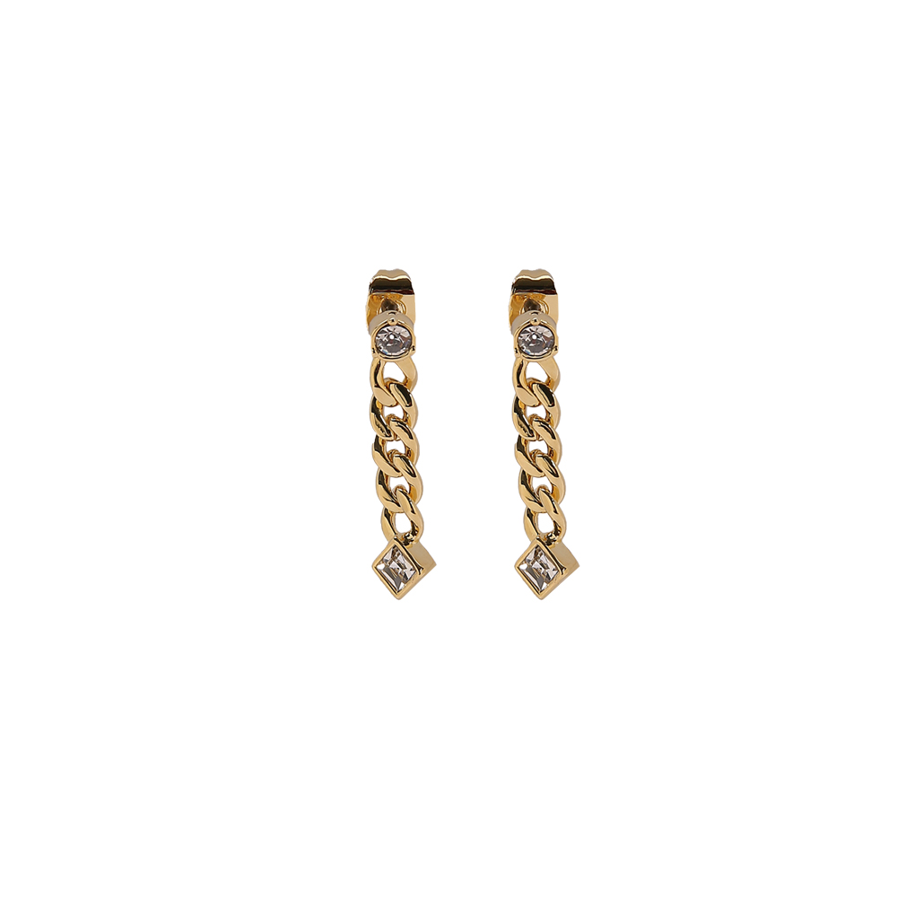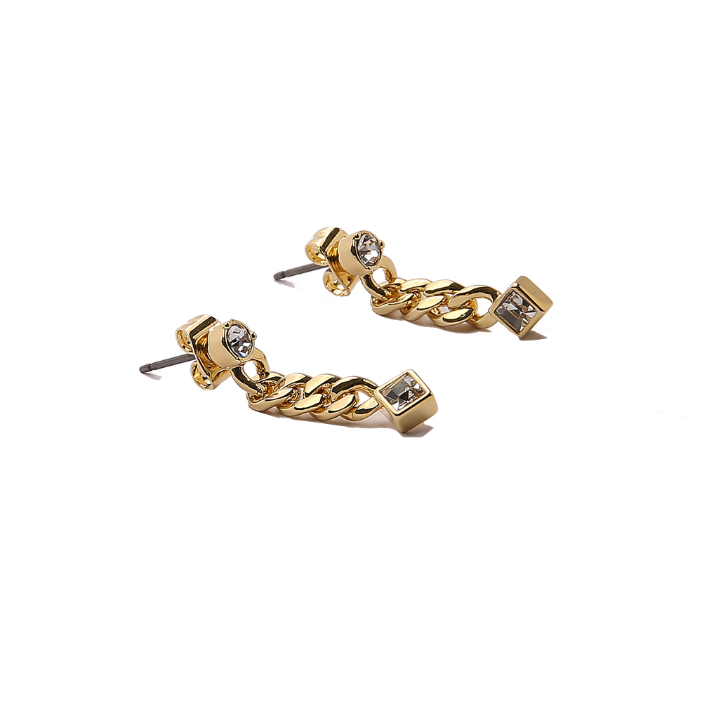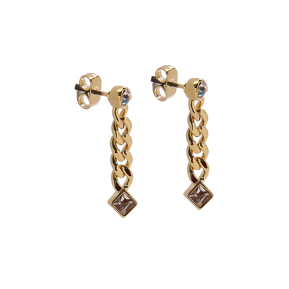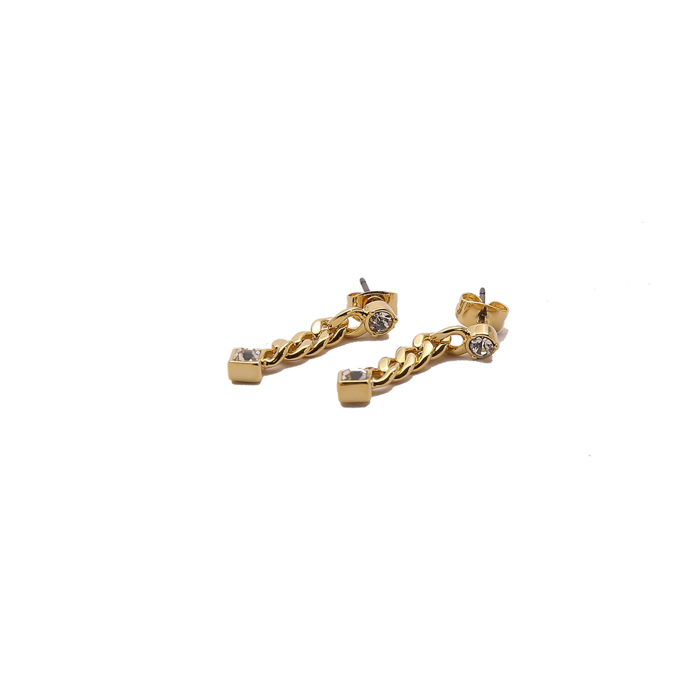 Vintage Style 23K Gold Plated Glass Stone Chain Earrings Simple Copper Zircon Earring For Women