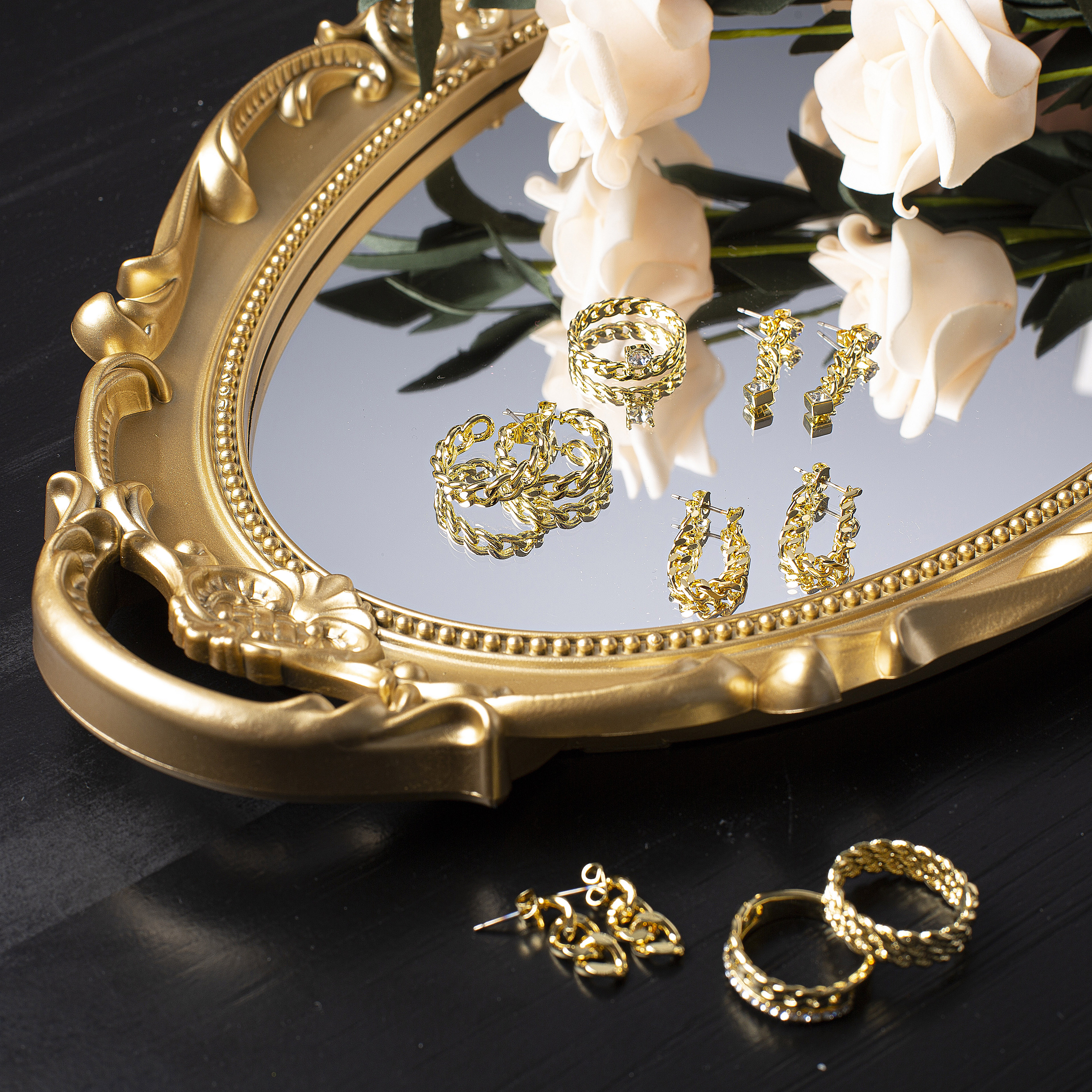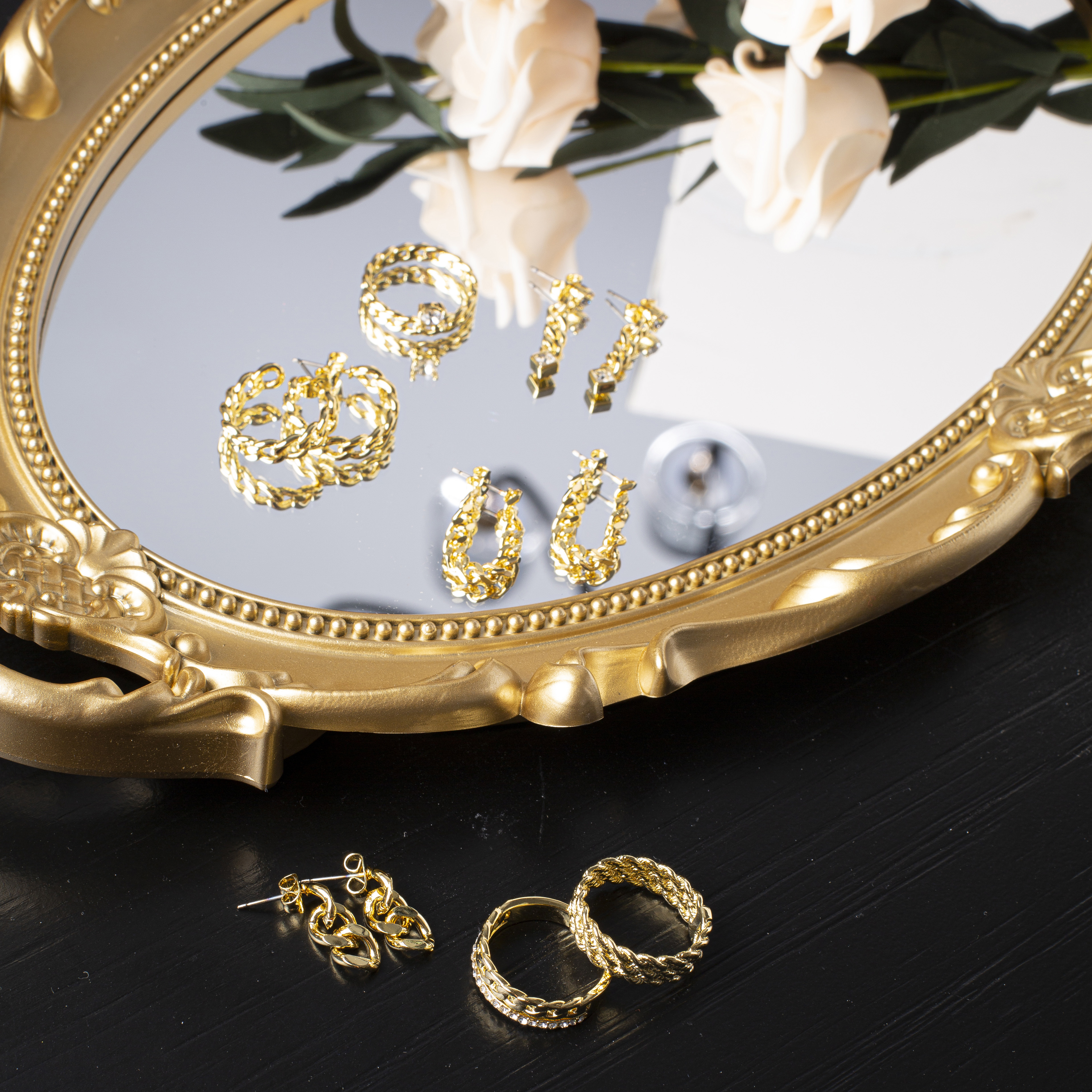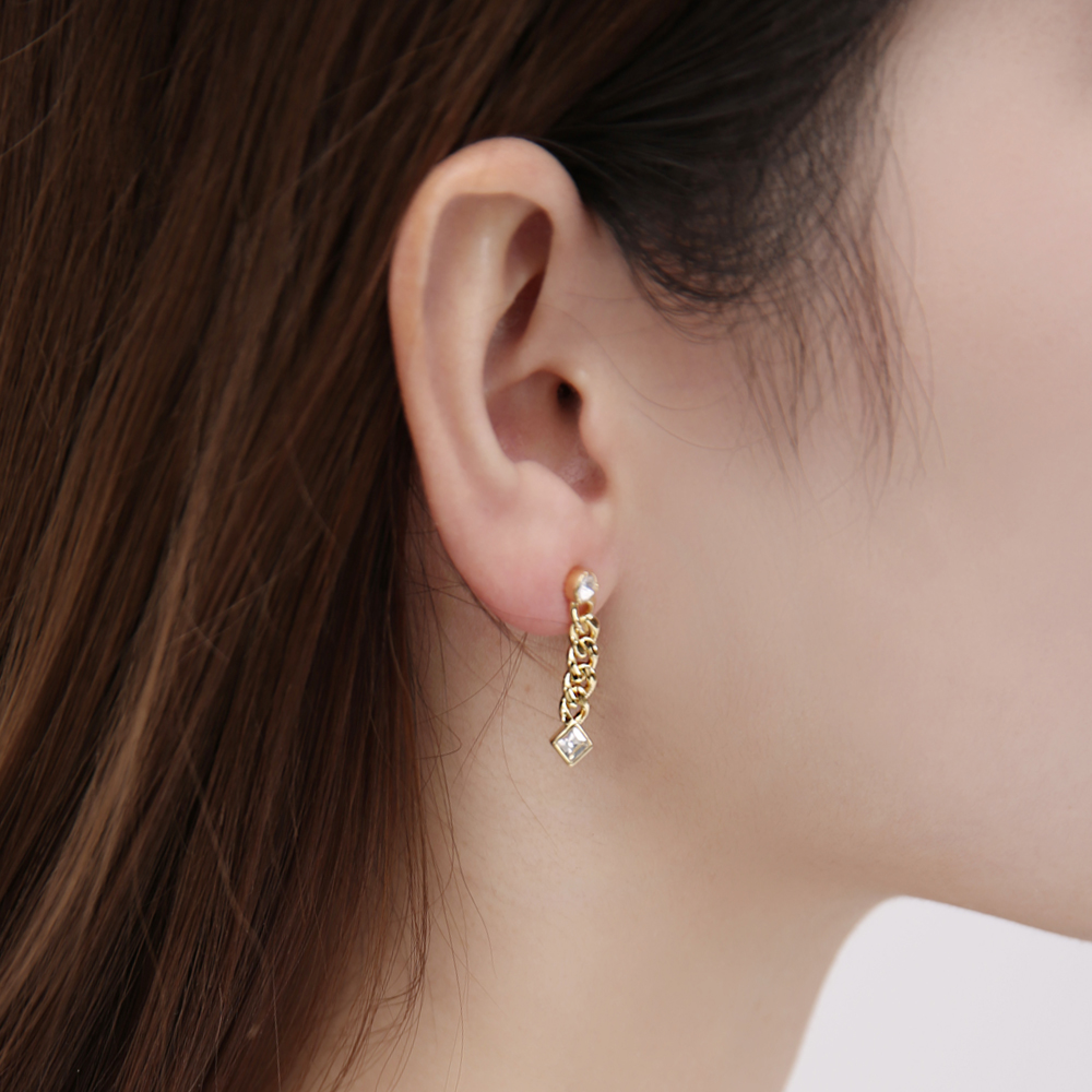 Vintage Style 23K Gold Plated Glass Stone Chain Earrings Simple Copper Zircon Earring For Women