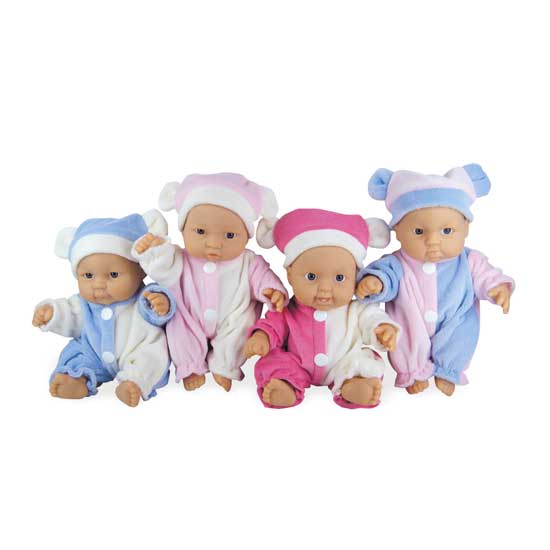 Showcased are four vinyl dolls with different facial expression. They are made of non-phthalate for safe play for children. These vinyl dolls are capable of sitting and standing positions for easy display.