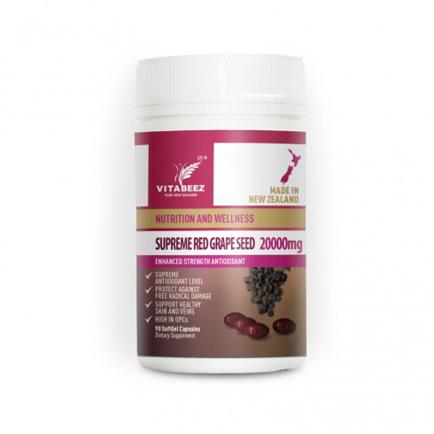 Vitabeez Grape Seed 20000mg is an extra strength antioxidant supplement which provides 20g of Vitisvinifera (Grape Seed) per capsule.