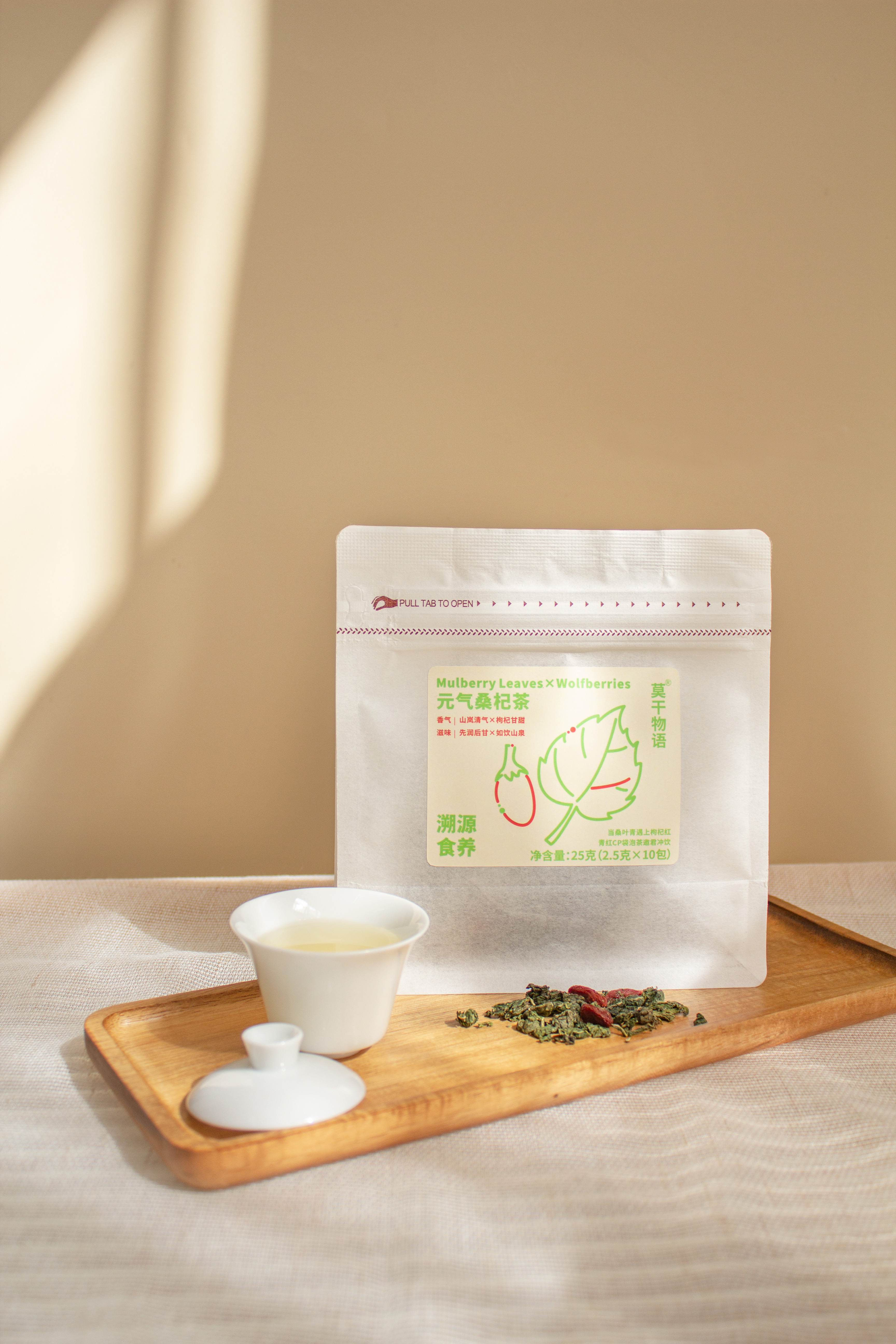 A blend of premium mulberry leaves and goji berries in a balanced herbal formula. Steep for 3–5 minutes to enjoy a clear, mild, and naturally sweet tea. Perfect for office, home, or travel—recharge your energy anytime.
