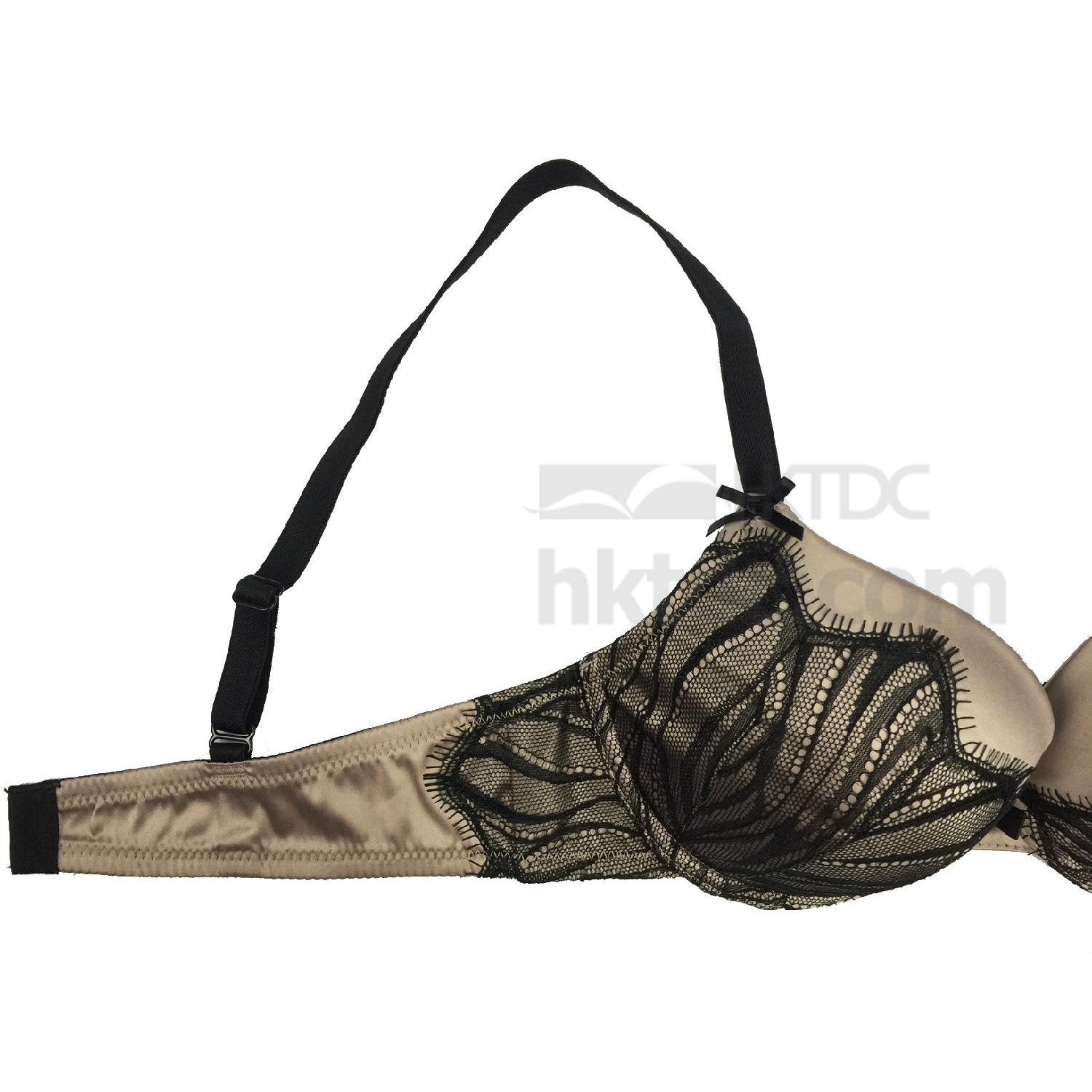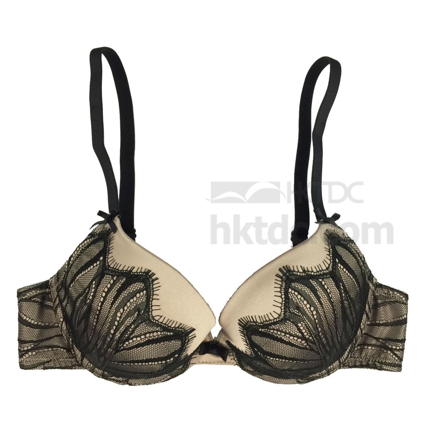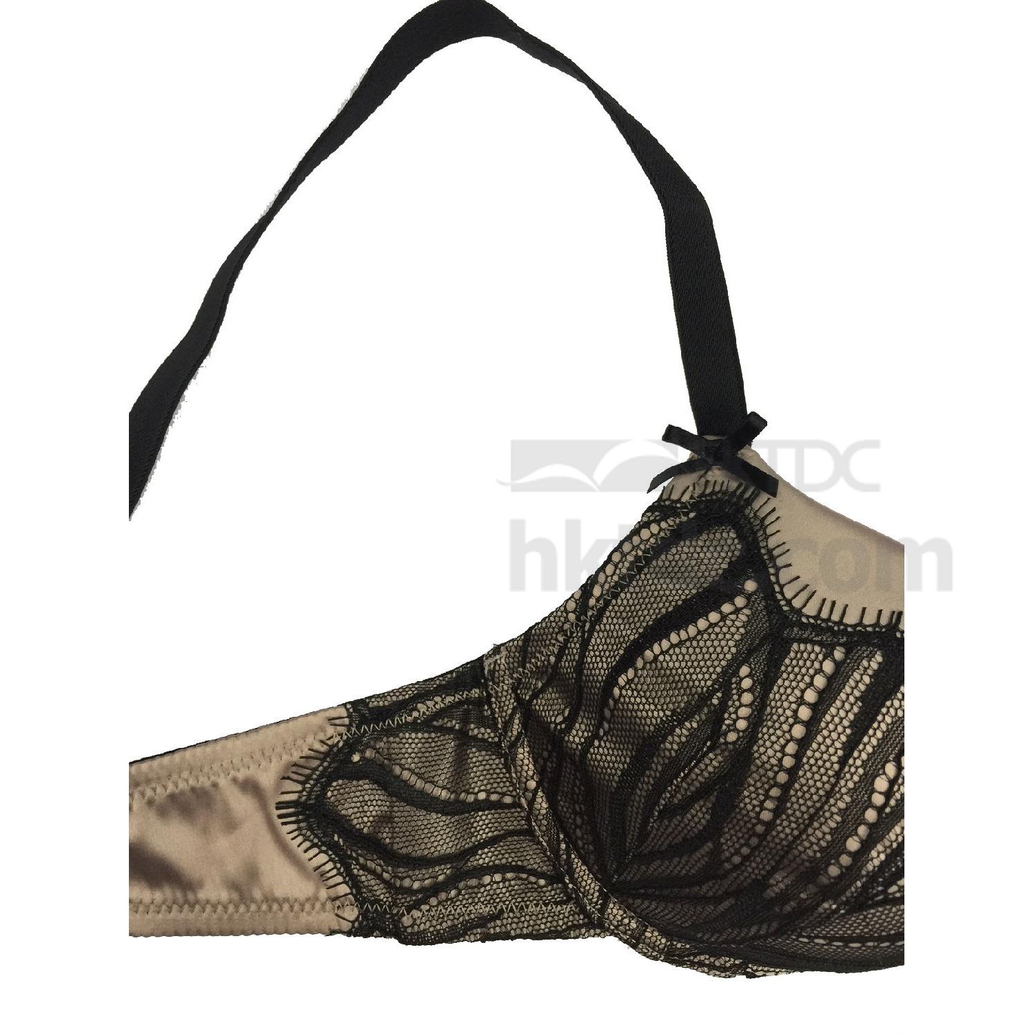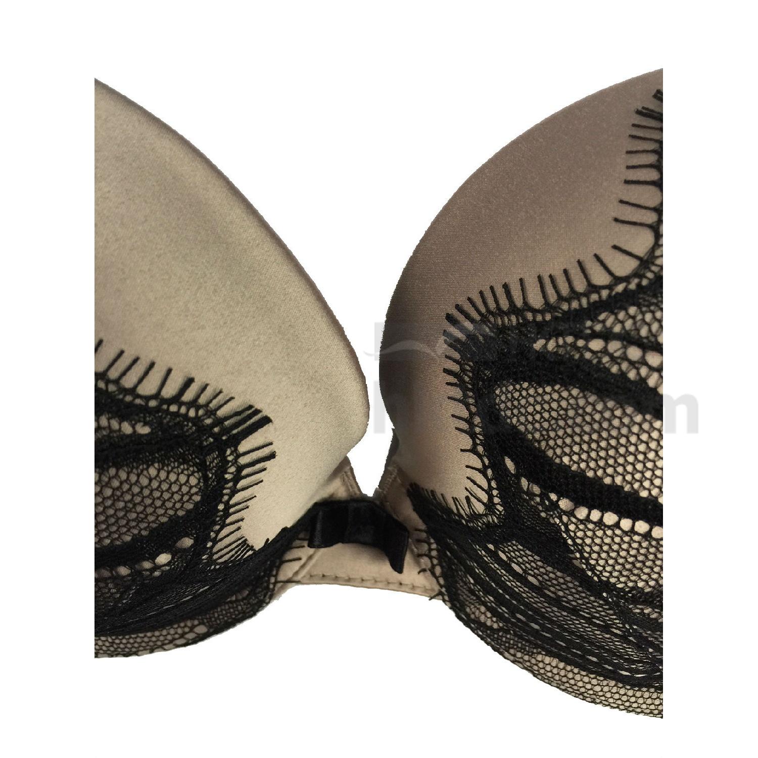 Viva Almond Eyelash Lace Satin mould push up pad bra brief set .