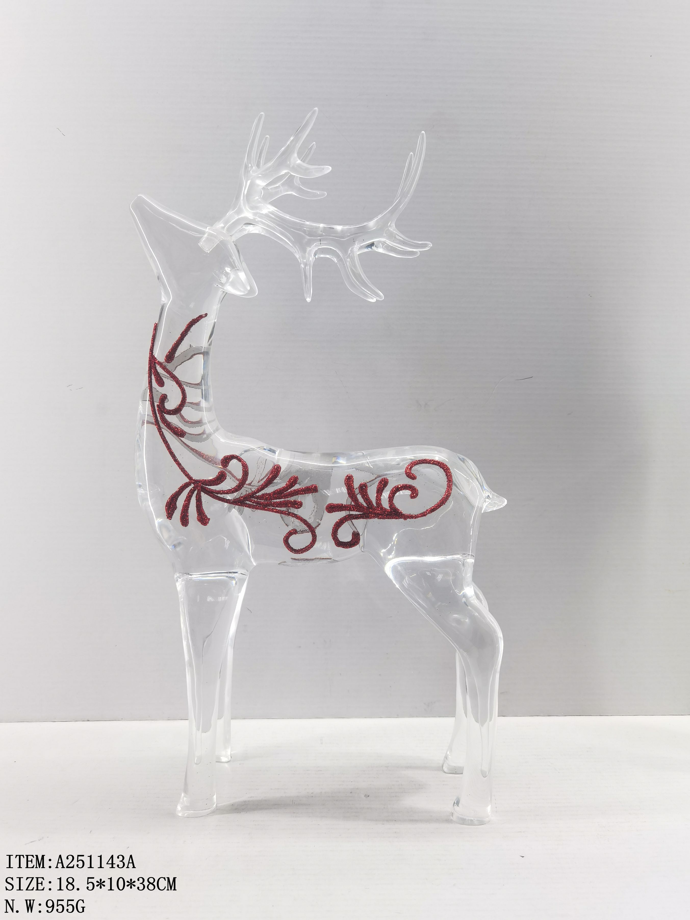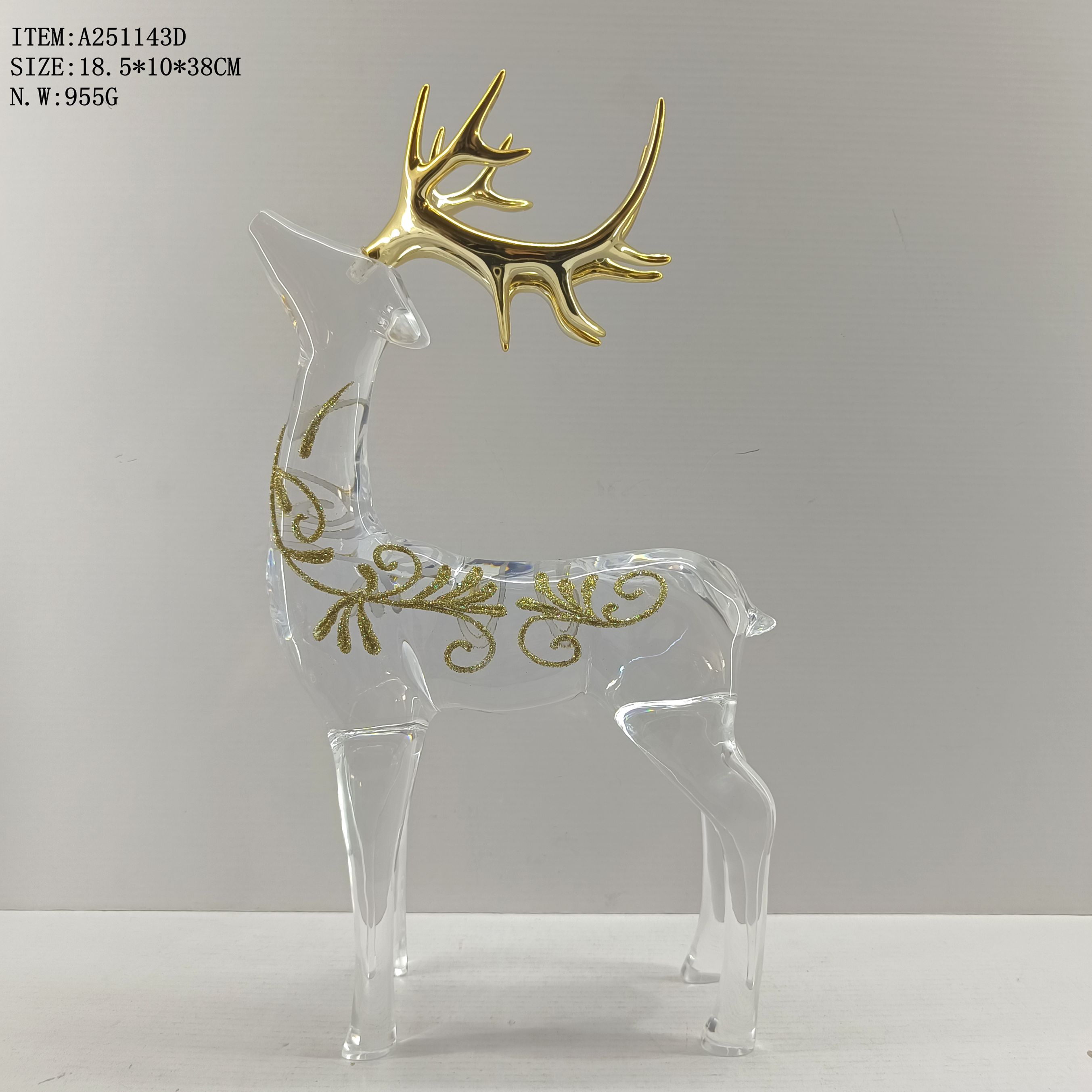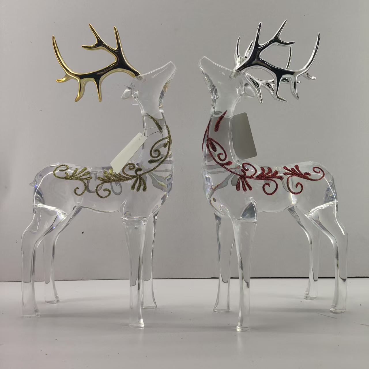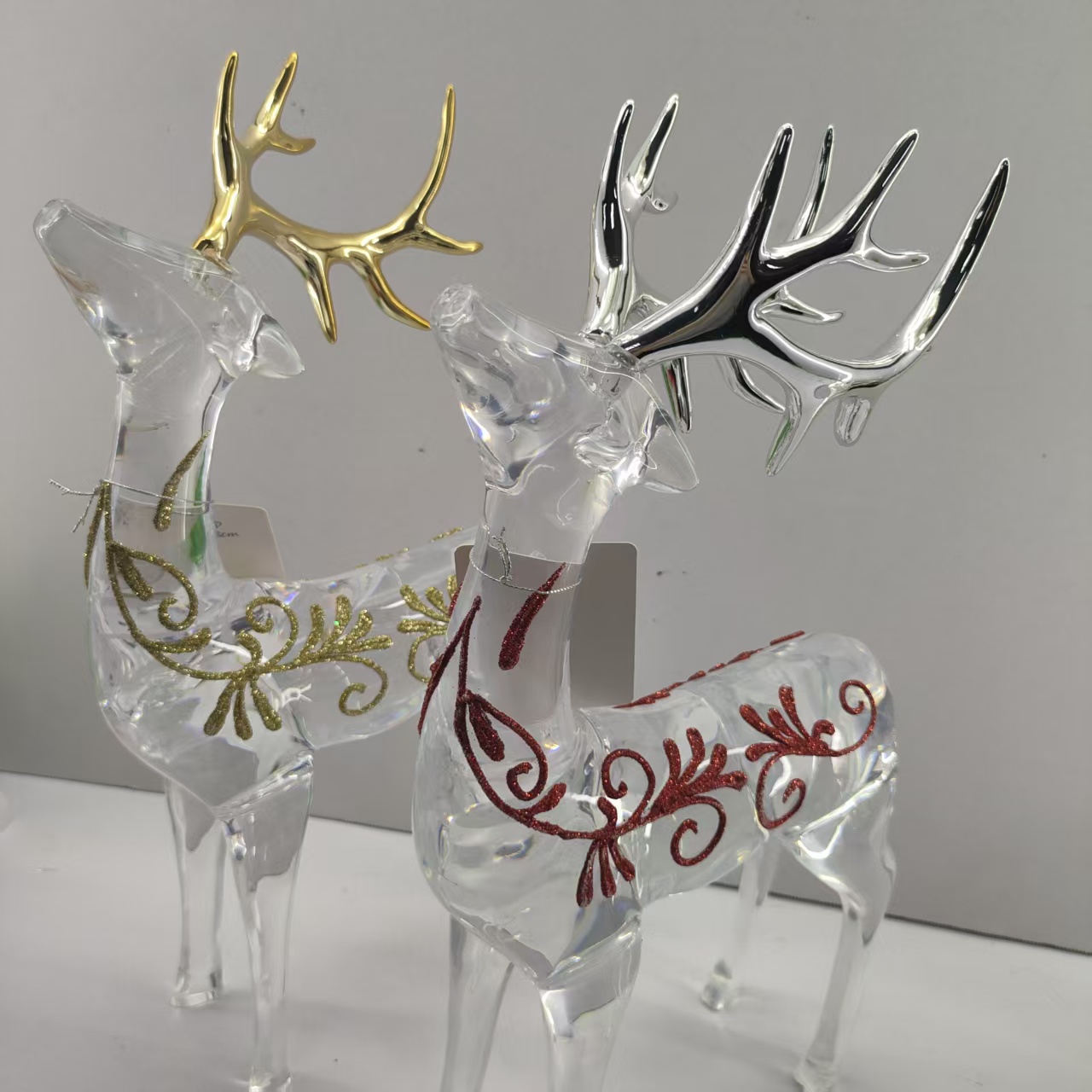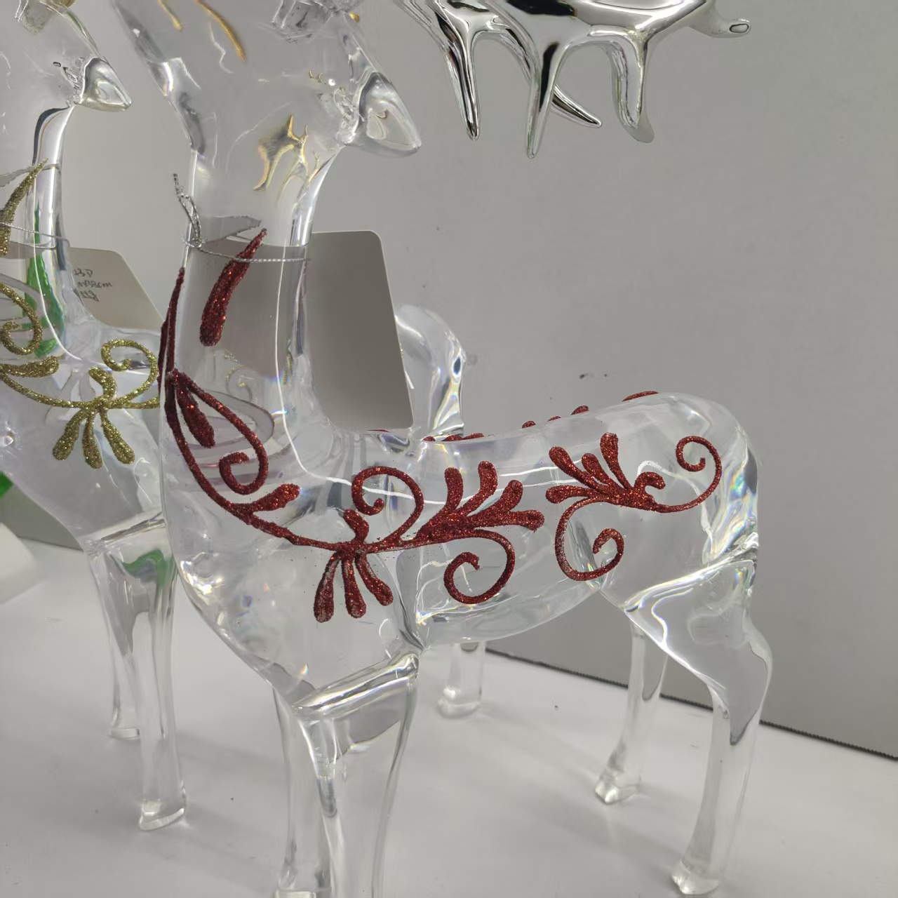 Vivid Acrylic Transparent Deer Crafts with Gold Antler Christmas Deer Decoration