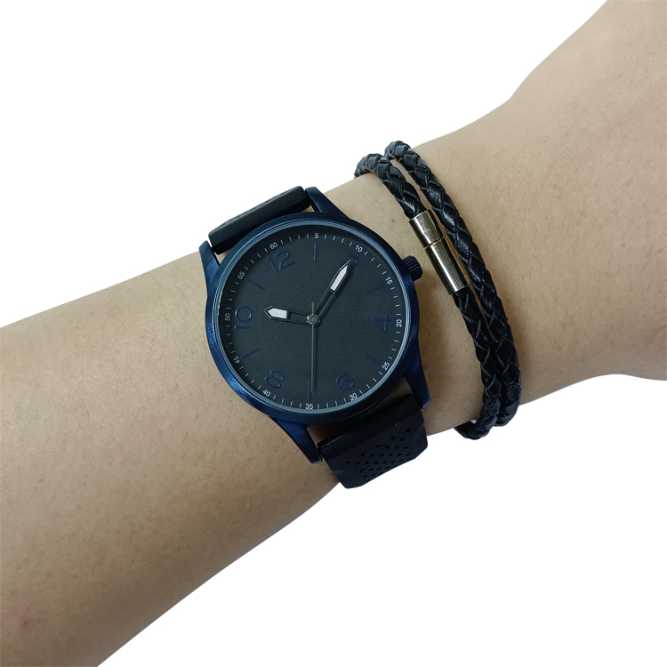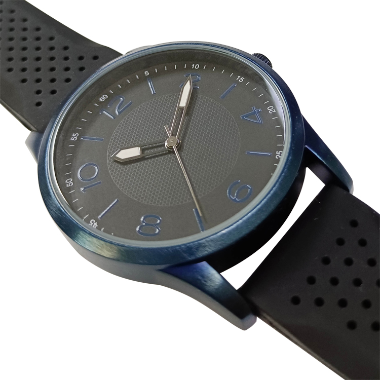 Vogue Blue Alloy Case Silicon Strap Quartz Wrist Watch for Men