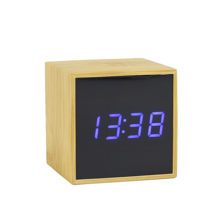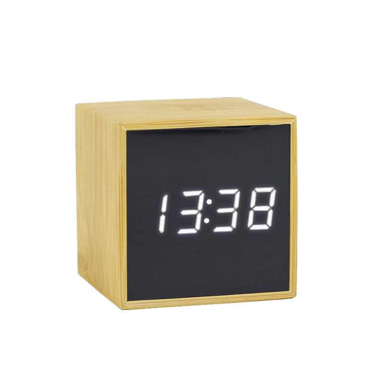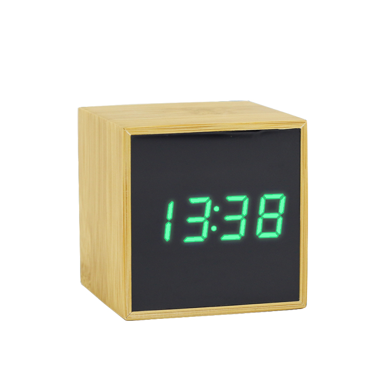 Voice Control USB Charge Time Date Temperature LED Display Digital Table Wooden Alarm Clock