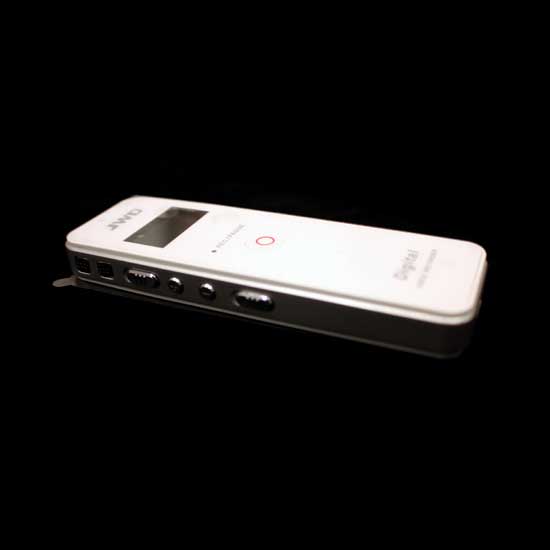 Displayed is a white-hued digital voice recorder coming in a compact size. The one-key recording design guarantees maximum convenience for users. This reliable digital voice recorder is widely used.