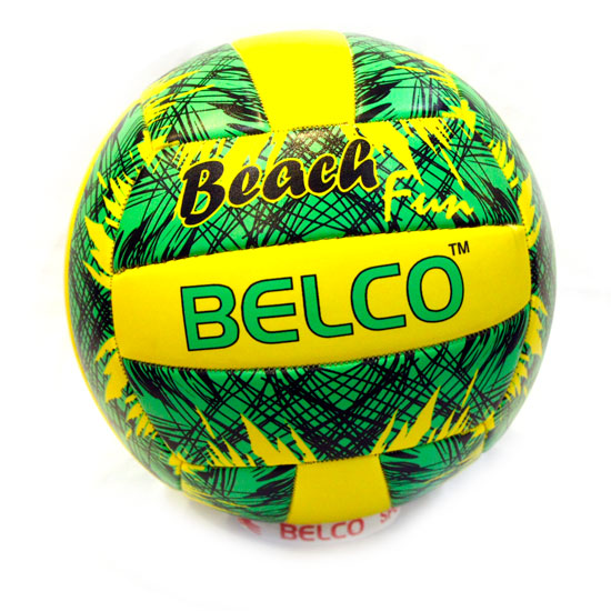 Pictured to you is a volley ball with a vivid design. Featuring green and yellow patterns, this volley ball showcases an eye-catching touch. It is well constructed of PVC material, allowing durable use.