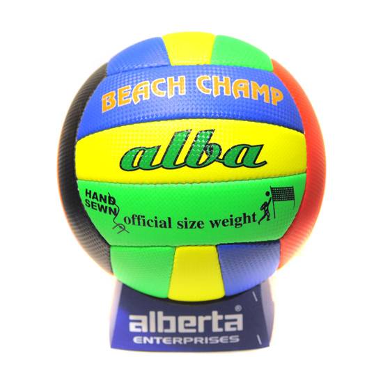 This is a volleyball which is decorated colourfully. The volleyball is made of plastic with offical size and weight.