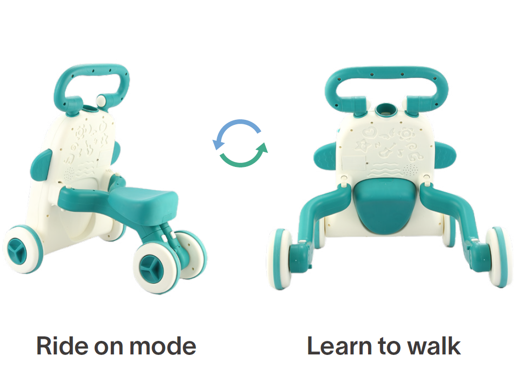 | 6. | Pushing walker and ride on car ,free conversion,Prevent O legs design. |
