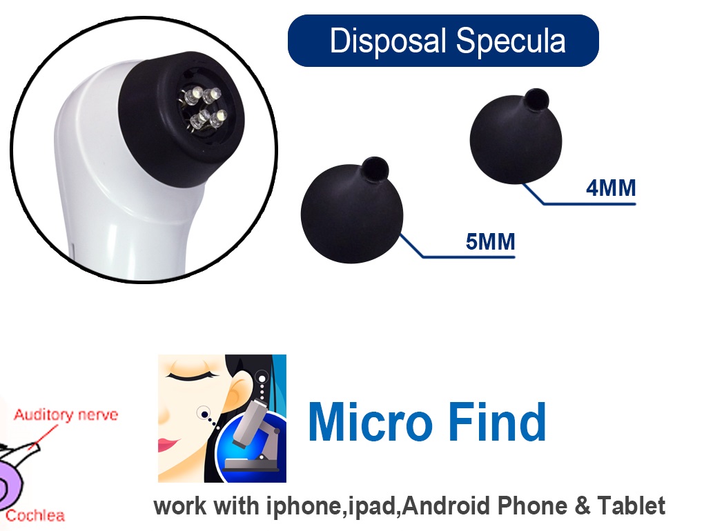 3. Hand-held WIFI Otoscope can be easy to check inside by right focus design
