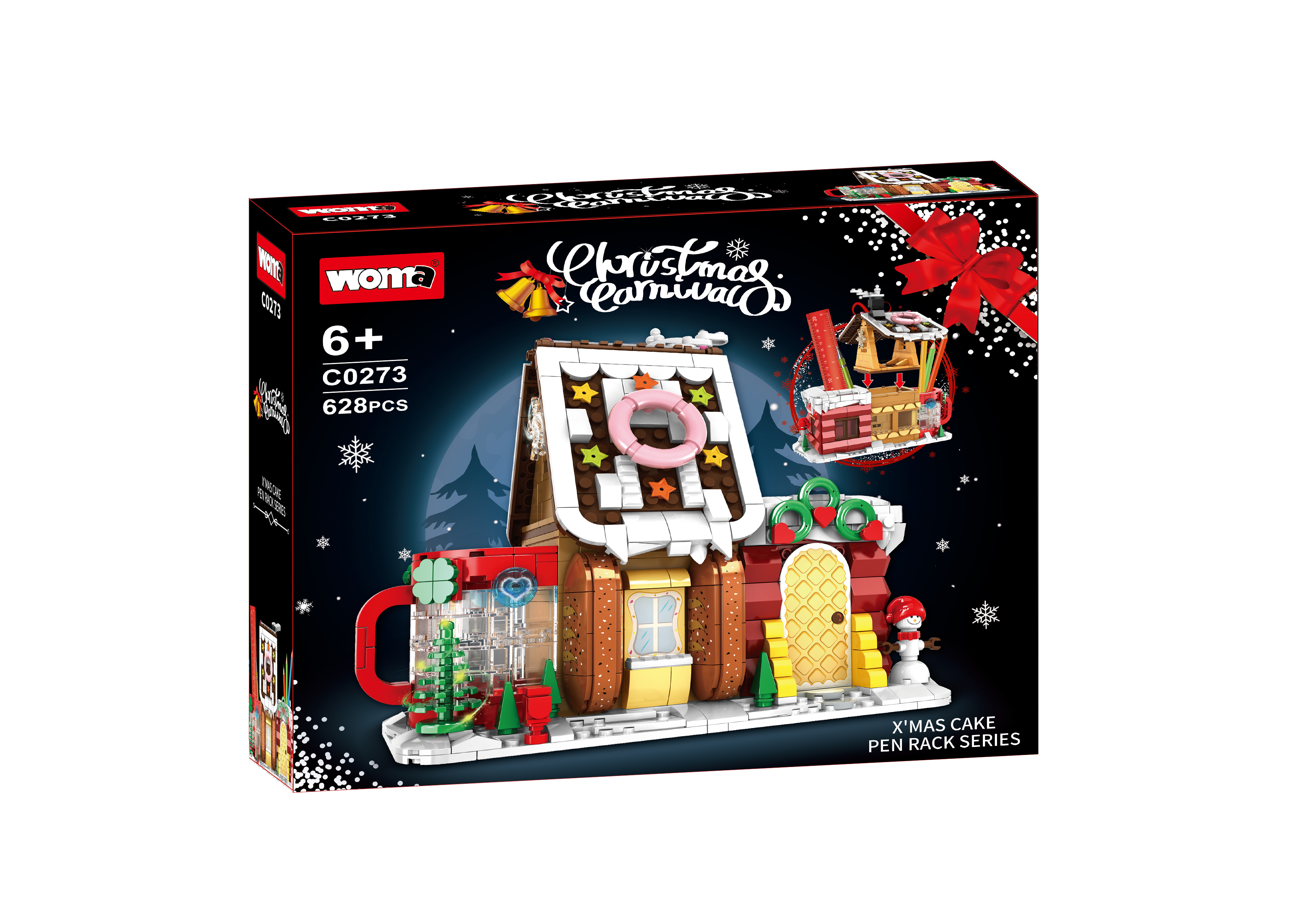 WOMA TOY Retail Sale Xmas Kids Adult Moc City Bar Snow Scene Christmas House Tree Model Building Block Set Construction Toy