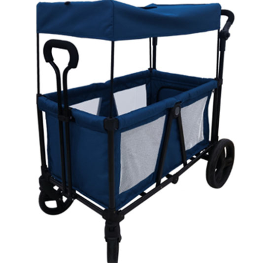 lEASY TO DRIVE: The wagon has 2 adjustable leatherette handlebars so you can push or pull; Swivel front wheels for easy turning; One-step on/off parking brake; 12” back wheels, 7.5” front wheels