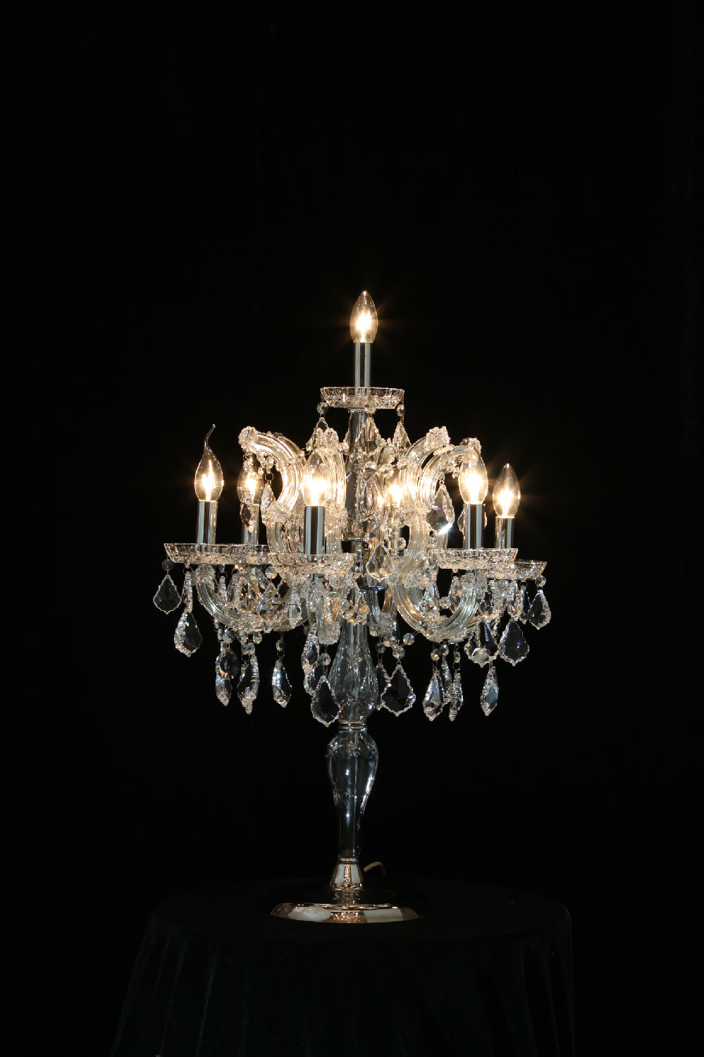 Crystal table lamp in 6 lights with Asfour crystal it can matching with chandelier, wall and floor lamps . The finishing can been in gold, satin, red, black, Chrome ,. France gold colors.