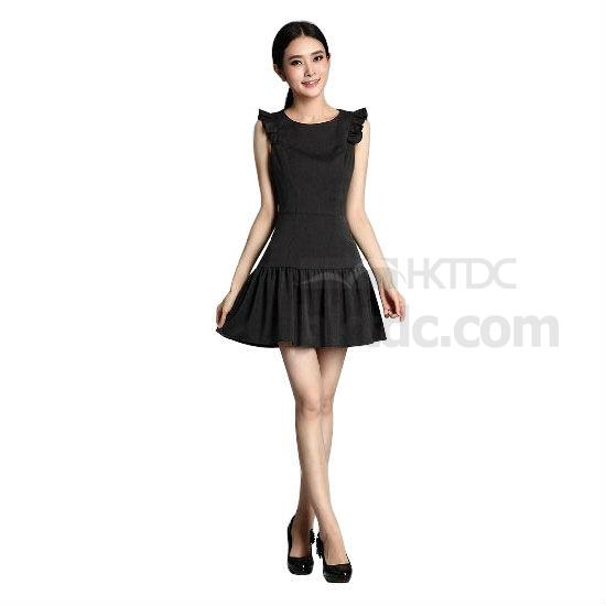- Sleeveless style with delicate flounces.