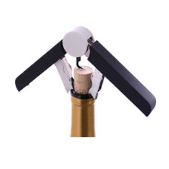 Displayed here is a waiters' corkscrew with a durable metal construction. The double levers with tight tension are designed for easy leverage. This useful and robust corkscrew is a great accessory for a wine lover.