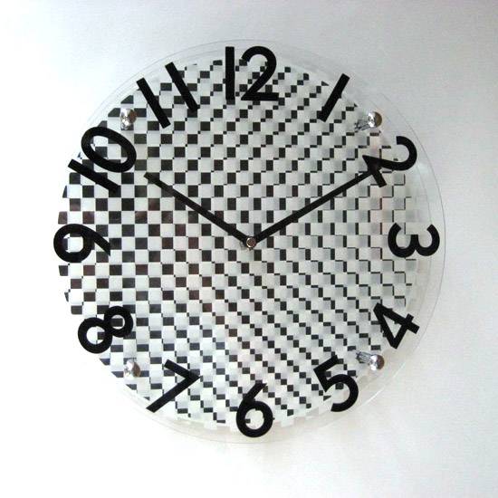 The clock dial is adorned with checked patterns in a gradually changed style.