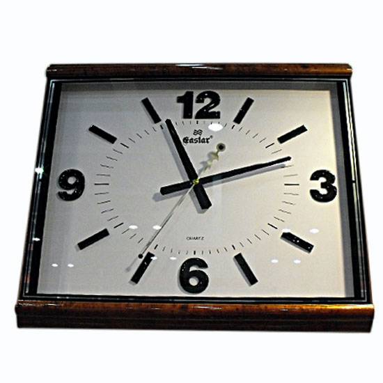 The contemporary wall clock boasts a plastic frame with wood patterns. The embossed plastic hour indexes and aluminum hands strikingly offset the bold white dial. Enjoy a simple, sophisticated wall clock that enhances your home decor without dominating the room.