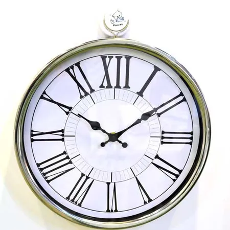 Featured here is an exquisite wall-mounted clock in round shape. The round dial features Roman numerals. The slim bezel flaunts a glossy finish. The two-hand design offers a clean style.