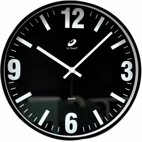 This pictured wall clock highlights a high-contrast design in black and white. The white markings on the glossy black dial make sure time is easily read even from a far distance. The sturdy metal casing promises lasting durability.