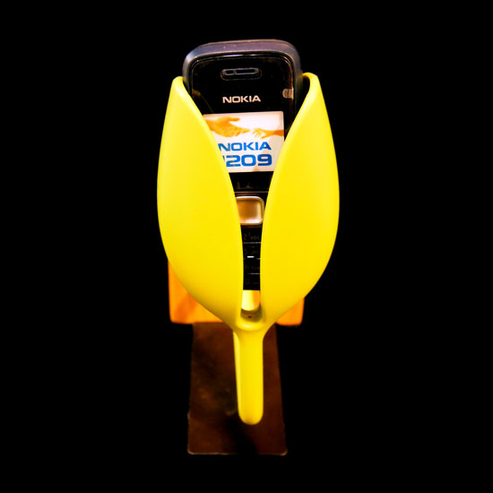This mobile phone holder is designed in the shape of a pair of fresh green leaves. It allows users to spot incoming calls and messages easily. This novel product also makes a pleasant choice of gift.