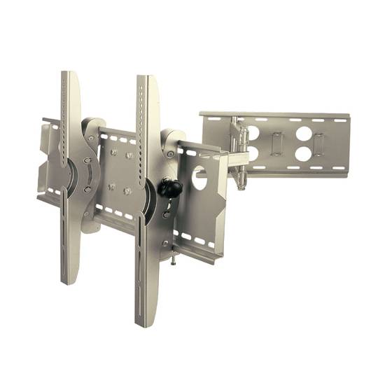 This is a wall panel that used to mount flat TV on the wall. The brace of the mount is separated into two parts: one is the horizontal part and another one is the vertical part. The horizontal part has two arcs which can turn the TV by 180 degree x 180 degree from left to right. The vertical part can also turn the TV vertically and this enables the LCD TV to be viewed from various angles and hence saving the time from planning the place of installing the wall mount. It is made of high quality material that can support a heavy weight. The wall mount is simple in design which allows people to install it easily.