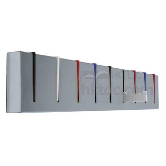 This household wall rack features a unique bar shape. The rack comes with 9 hooks which can be hidden when not used. The colorful hooks matching chromed base exude a modern style.