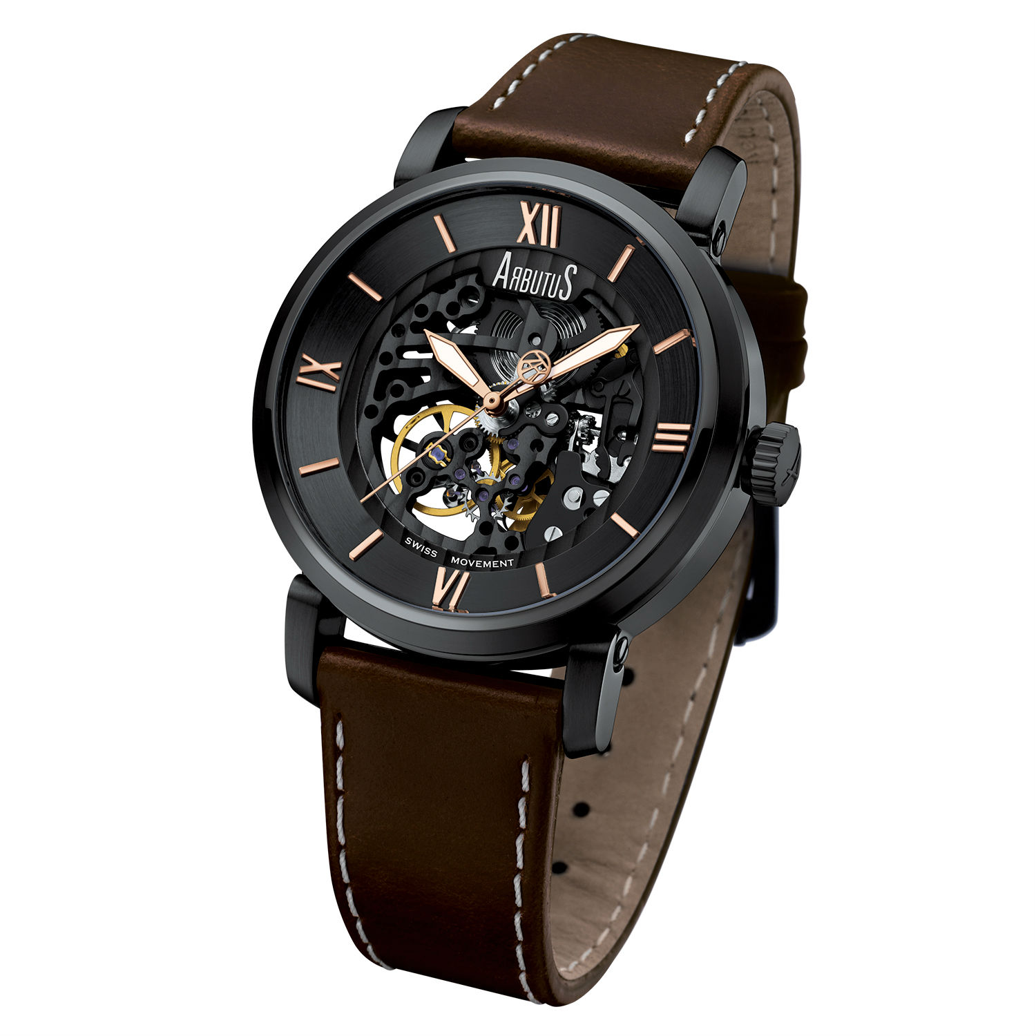 Movement: Swiss Made Automatic Movement (AA826-30-60) Function: Hour, Minute, Second, Case: Stainless Steel In IP Black(43.5MM) Glass: Sapphire Coating Band: Brown Genuine Leather Buckle: Stainless Steel In IP Black Water Resistant: 50M