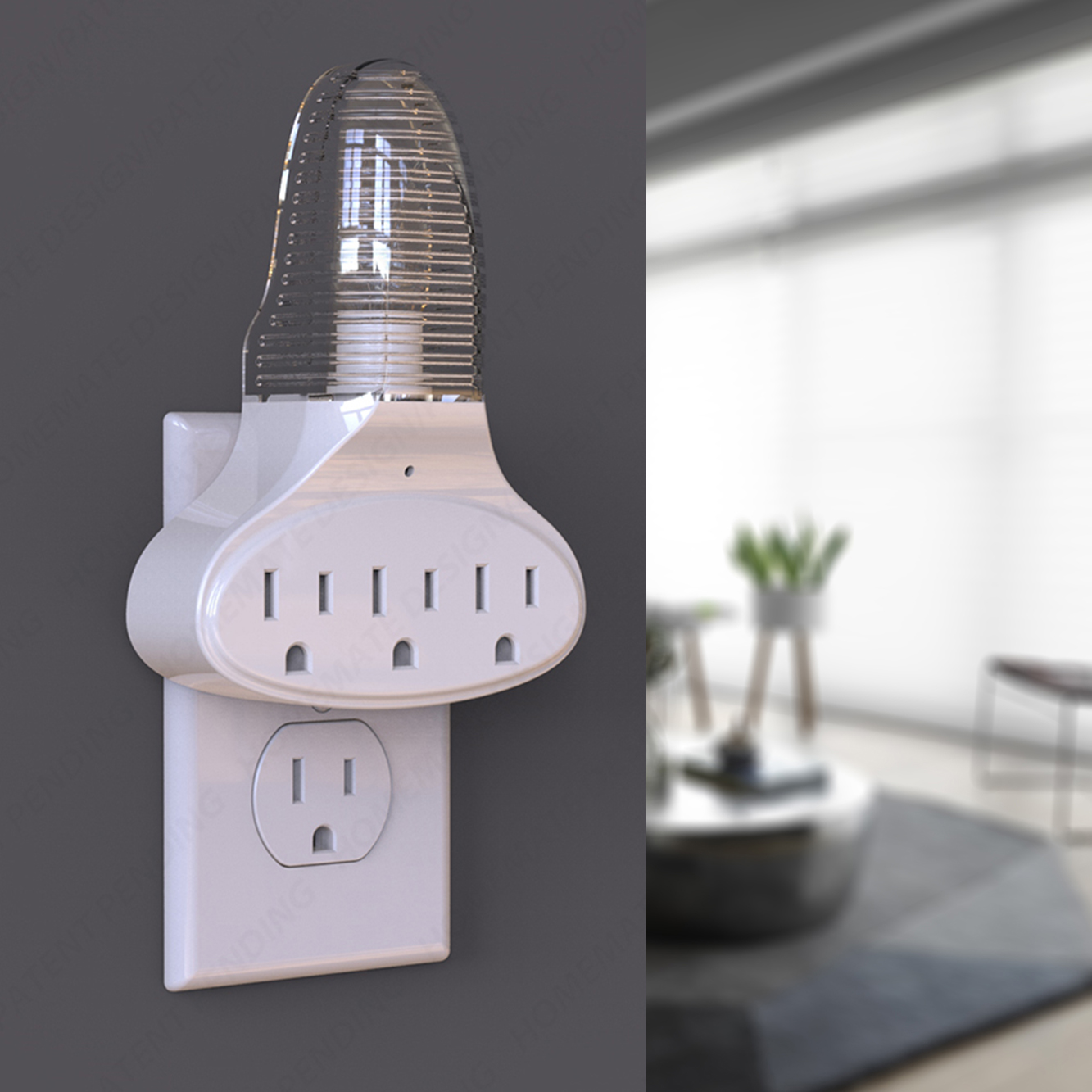 3-outlet wall tap with incandescent night light