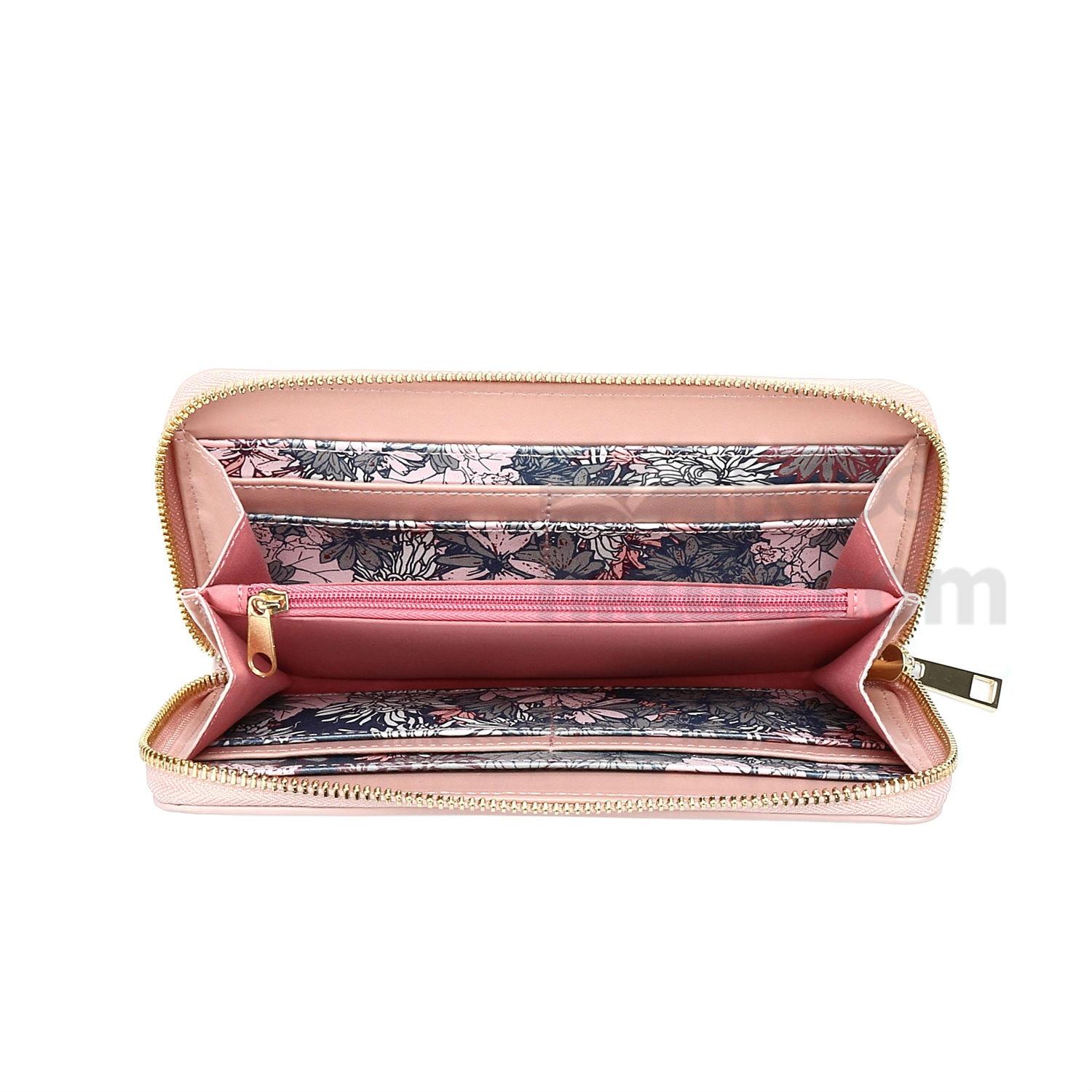 The highlighted long wallet comes in casual style and is perfect for ladies to keep their cards and money. It is made of PU and is adorned with digital printed flowers. This ladies wallet has multiple slots and a zippered pocket inside to offer safe and organized storage.