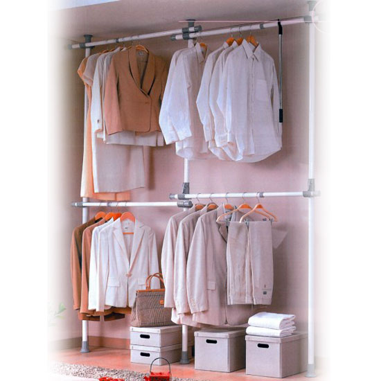 This space-saving wardrobe rack offers a neat way to organize your garments. It comes with powder-coated pipes for durability. This high-quality wardrobe rack is ideal for household use.