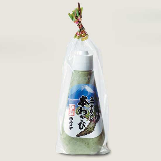 Displayed here is a bottle of wasabi paste with a delicate texture. It is made under a strict quality control. Prepare Japanese cuisines with this wasabi paste.
