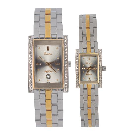 These elegant watches have stainless steel rectangular case and meash band. The case is decorated with valuable crystals and the polished mesh band is in silver and gold colours. Moroever, they are designed with a scrolling calender and calibrated mark for users to change time and date.