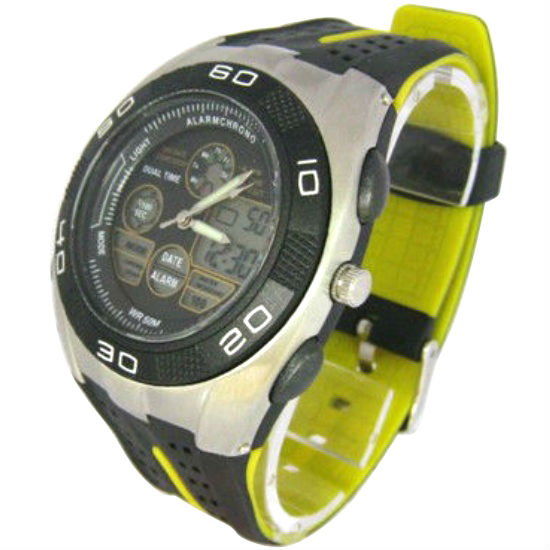 Feature: analogue, 1 alarm, stop watch, chime, day of week, EL backlight, 3 ATM water resistant