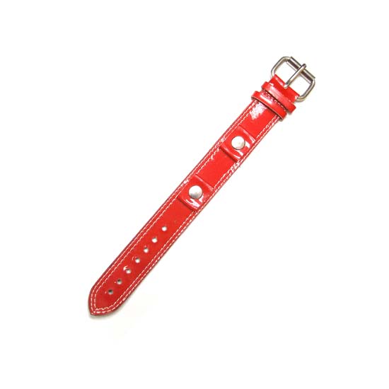 This watch band boasts an eye-catching design to please ladies’ eyes. The band comes in sharp red with white stitches and a glossy touch. Silvery buttons are added to look exceptionally fashionable.