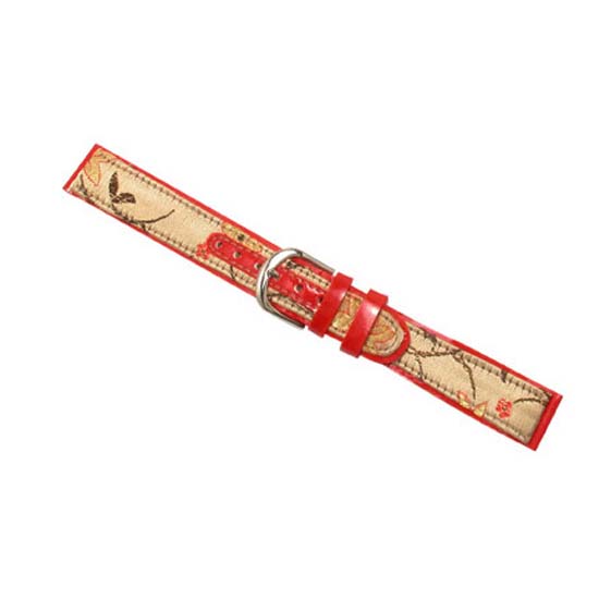This watch band flaunts a feminine design to match ladies’ watches. The band features elegant floral prints in a harmonious color tone. Sharp red details are added to look exceptionally impressive.