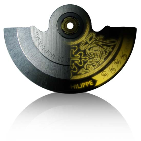 Showcased is a watch rotor with delicate craftsmanship. It is finely finished for long-lasting beauty. This elegant rotor is an ideal choice for watch designs.
