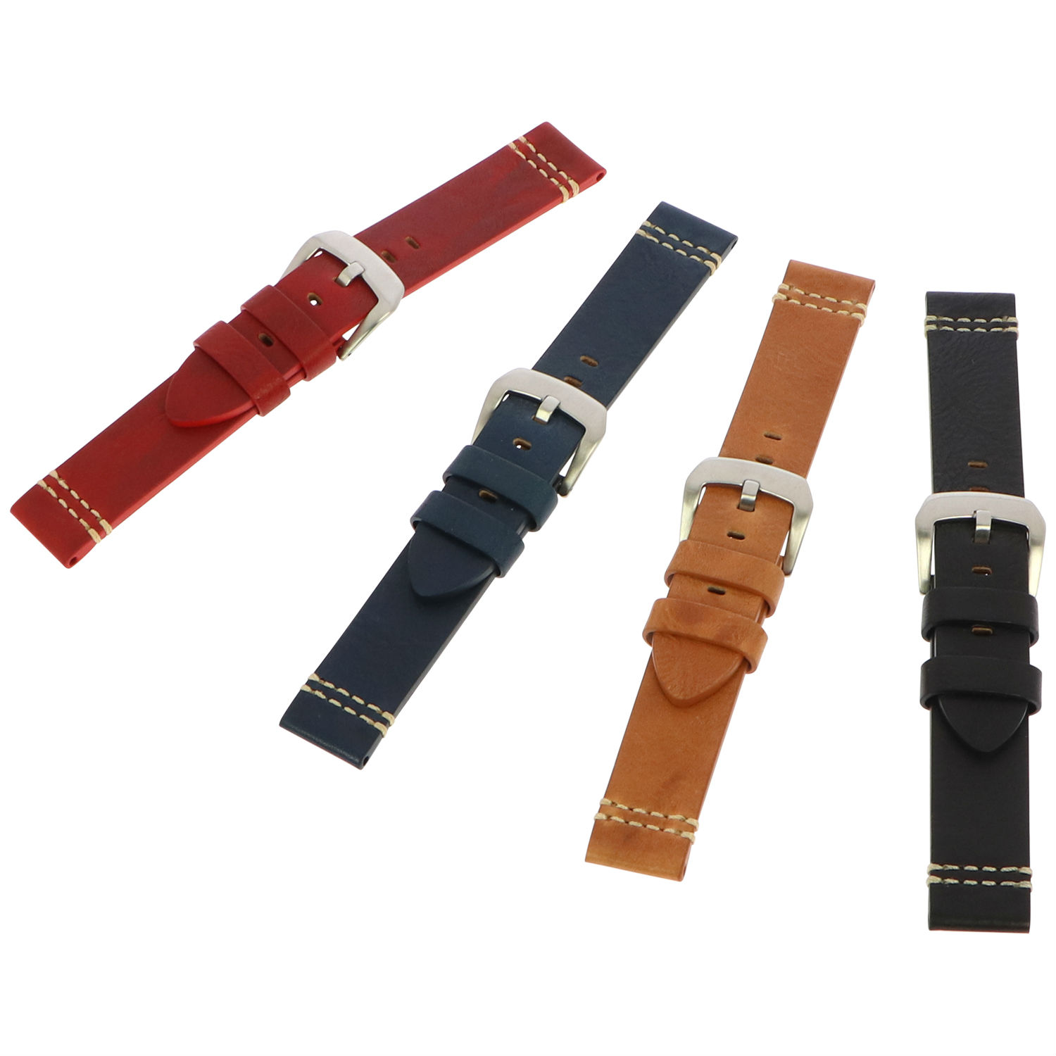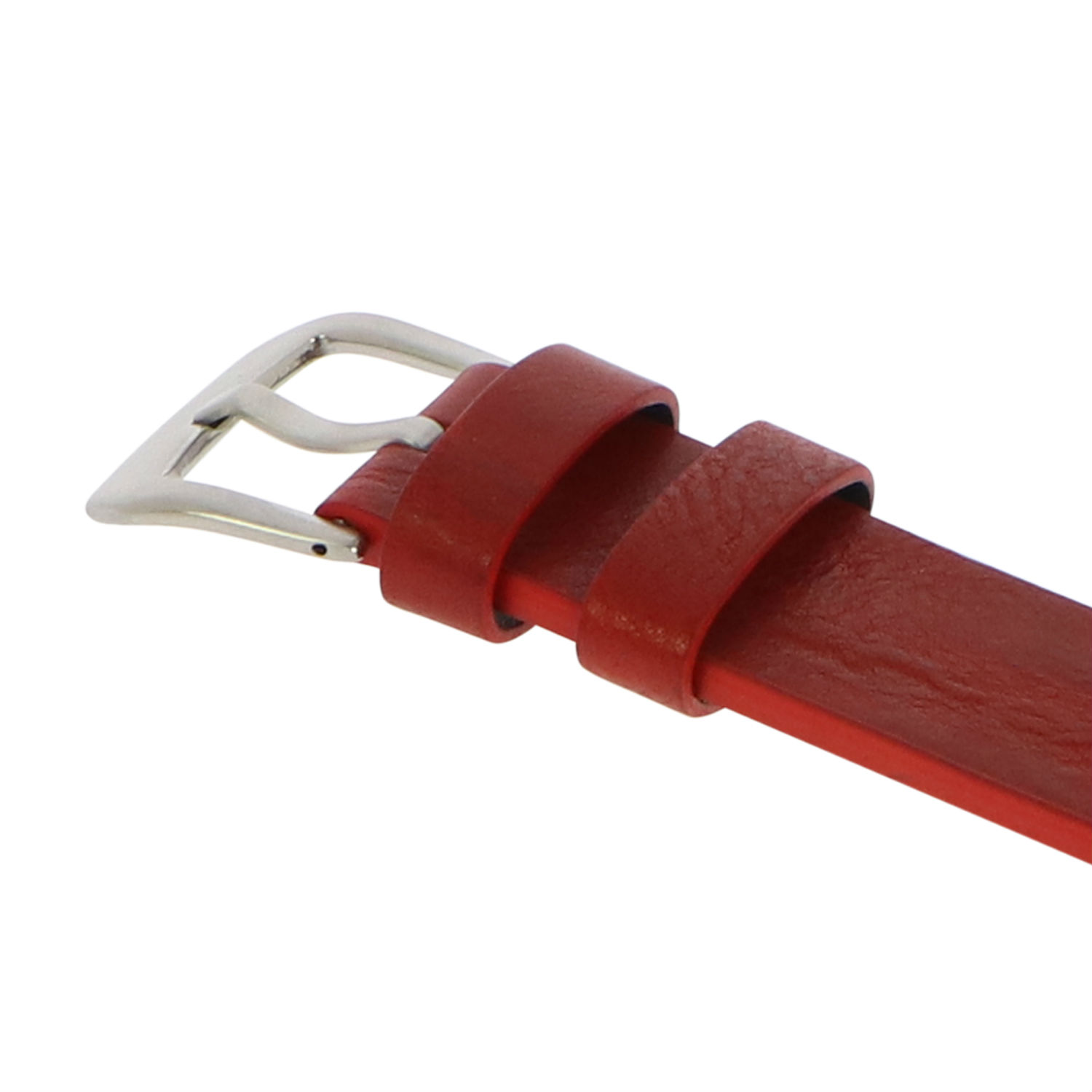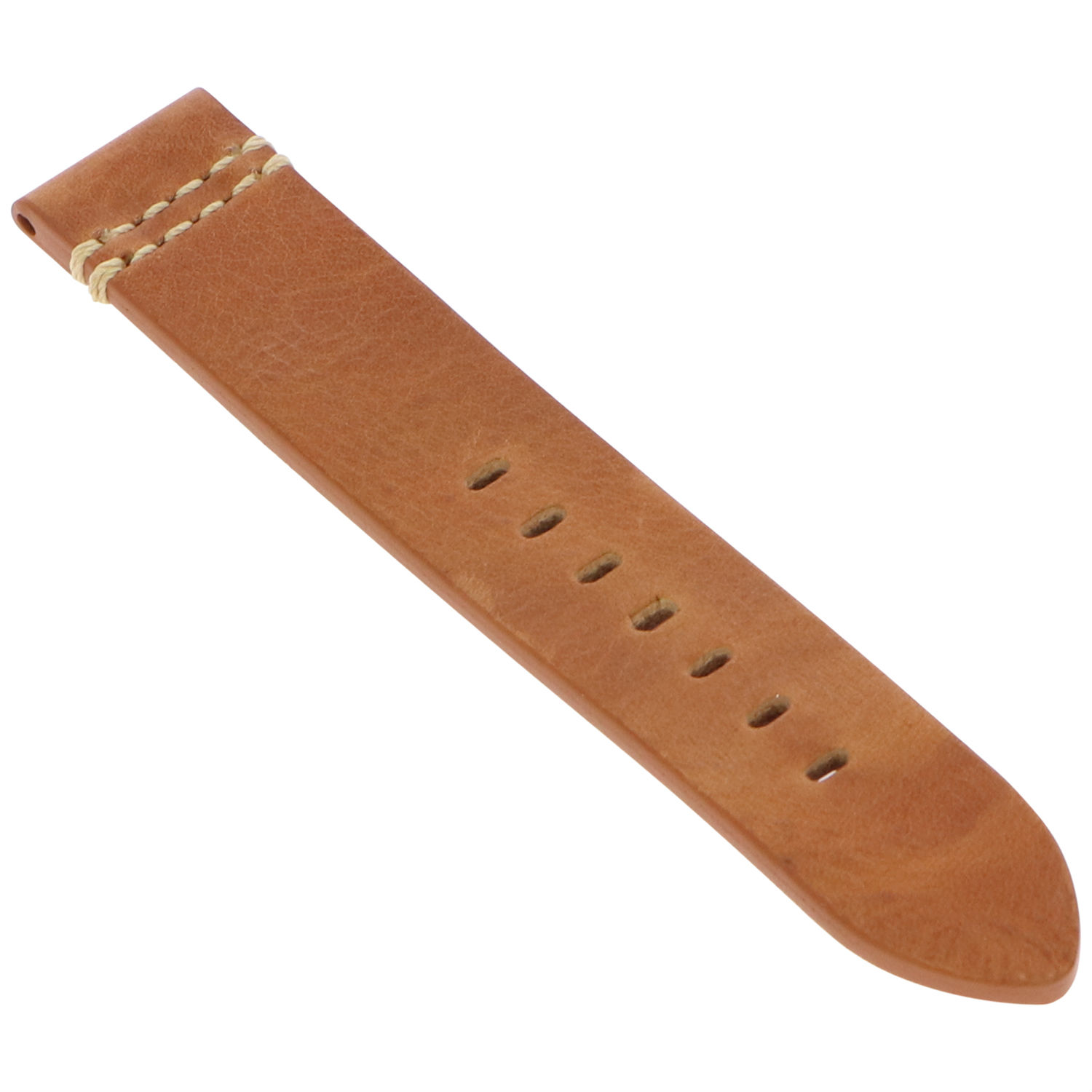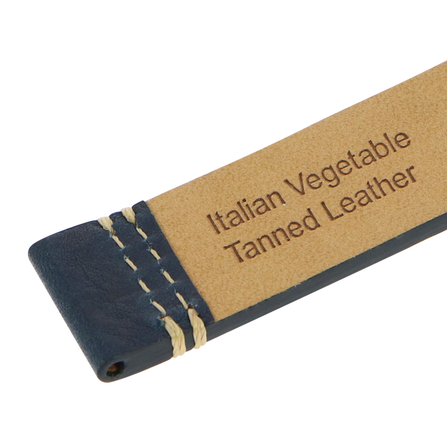 - Watch strap in cut edge, flat style with simple beige stitching.
