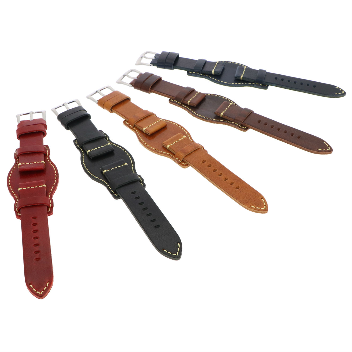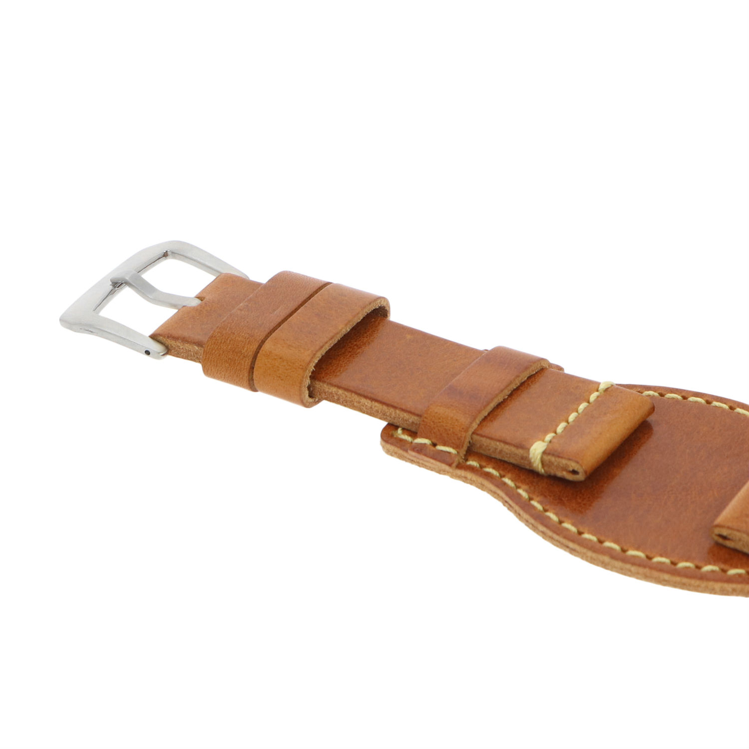 Watch straps in cut edge, flat style in simple beige stitching with underlay, good as pilot straps and aviator watch bands