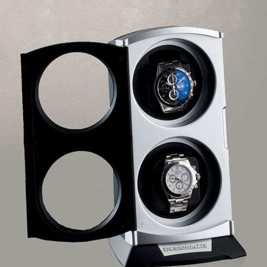 The watch winder "Primus" from Designhuette keeps your treasured timepieces running when not worn. It is designed for automatic watches with leather straps or steel bracelets. It beautifully displays your watches and prevents them from getting damaged.