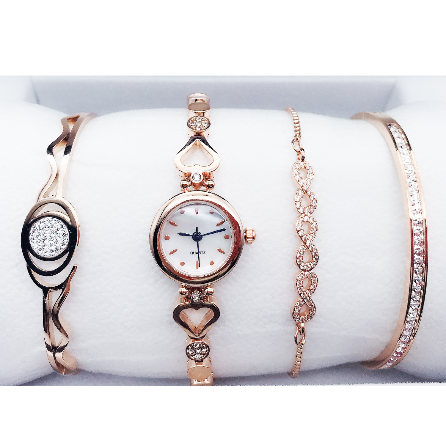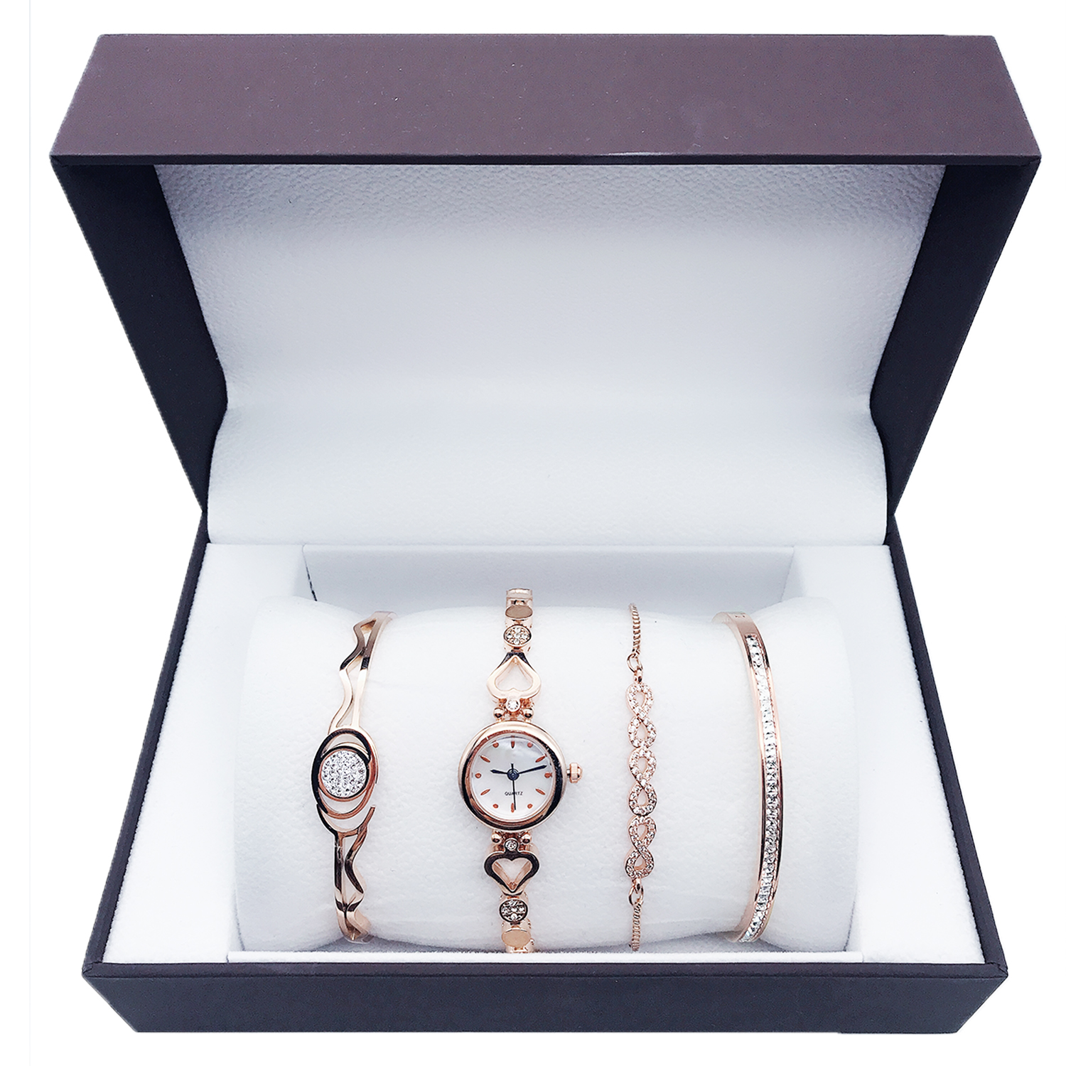 • Highlighted here is a set of Ladies fashion Watch with an alloy Case & Band and Stainless Steel Jewelry with good long lasting plating. Different models and colors of bracelet & bangle jewelry are available. Feel free to change the combination of the Gift set from our collection in your respective orders.