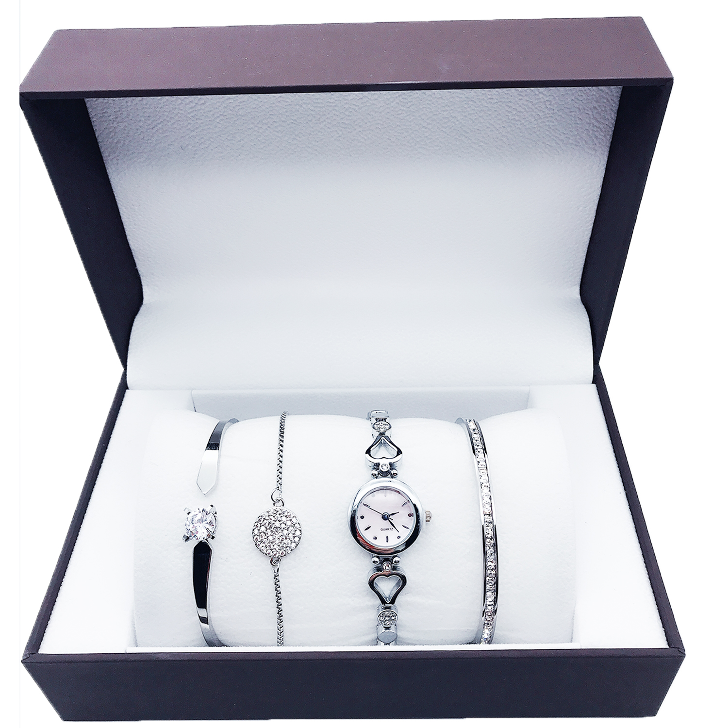 • Highlighted here is a set of Ladies fashion Watch with an alloy Case & Band and Stainless Steel Jewelry with good long lasting plating. Different models and colors of bracelet & bangle jewelry are available. Feel free to change the combination of the Gift set from our collection in your respective orders.